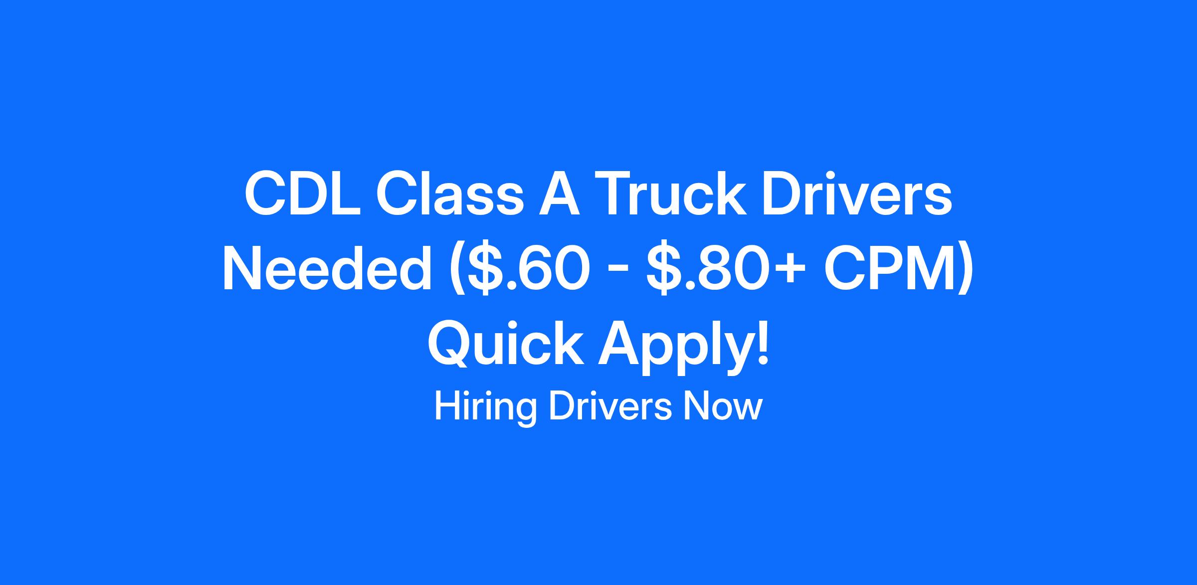 CDL Class A Truck Drivers Needed Now!