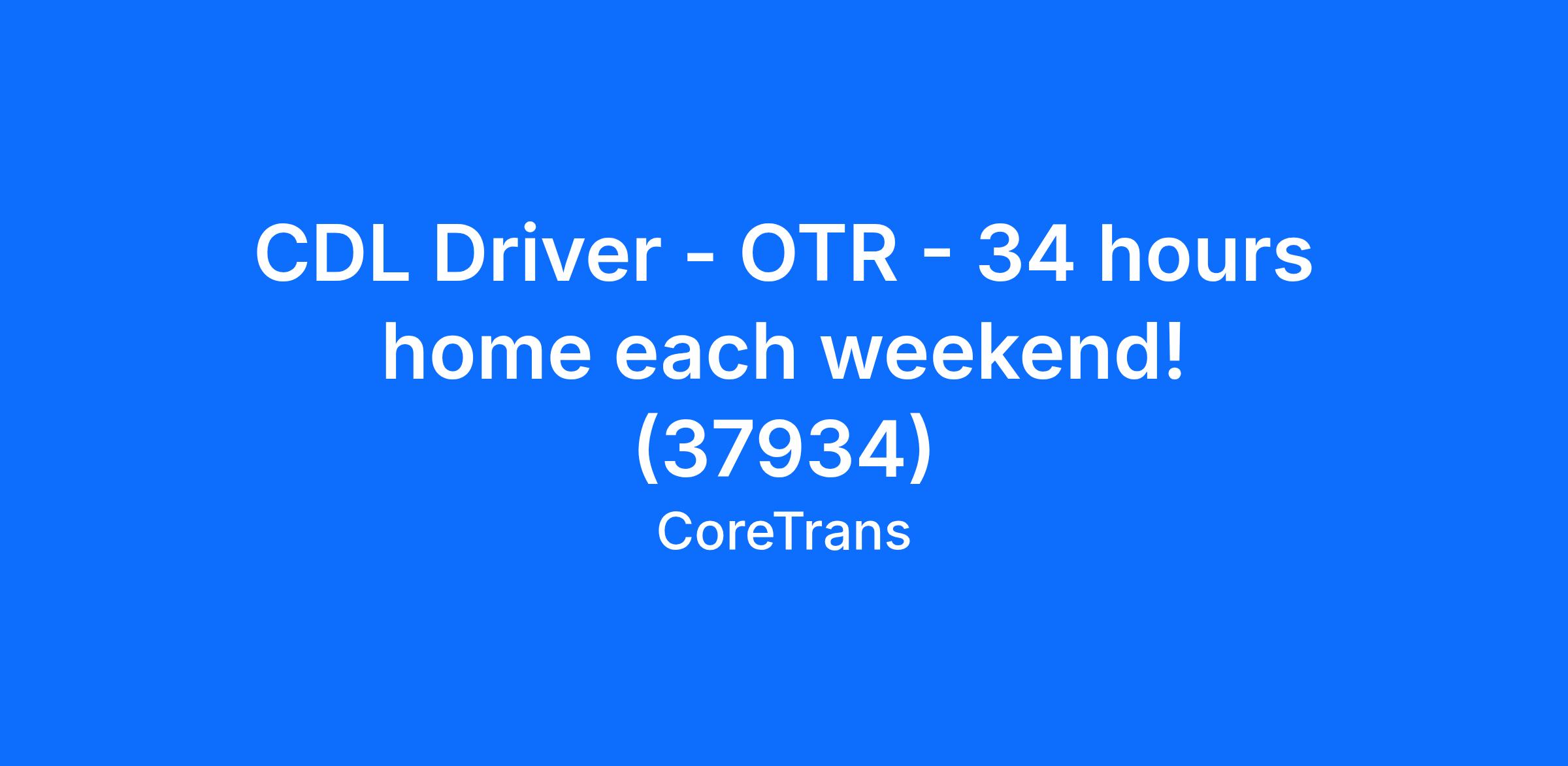 CDL Driver - OTR - 34 hours home each weekend! (37934)