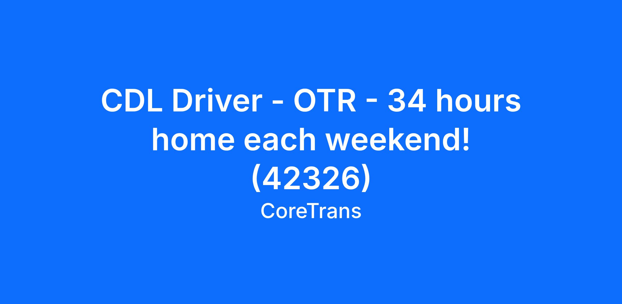 CDL Driver - OTR - 34 hours home each weekend! (42326)