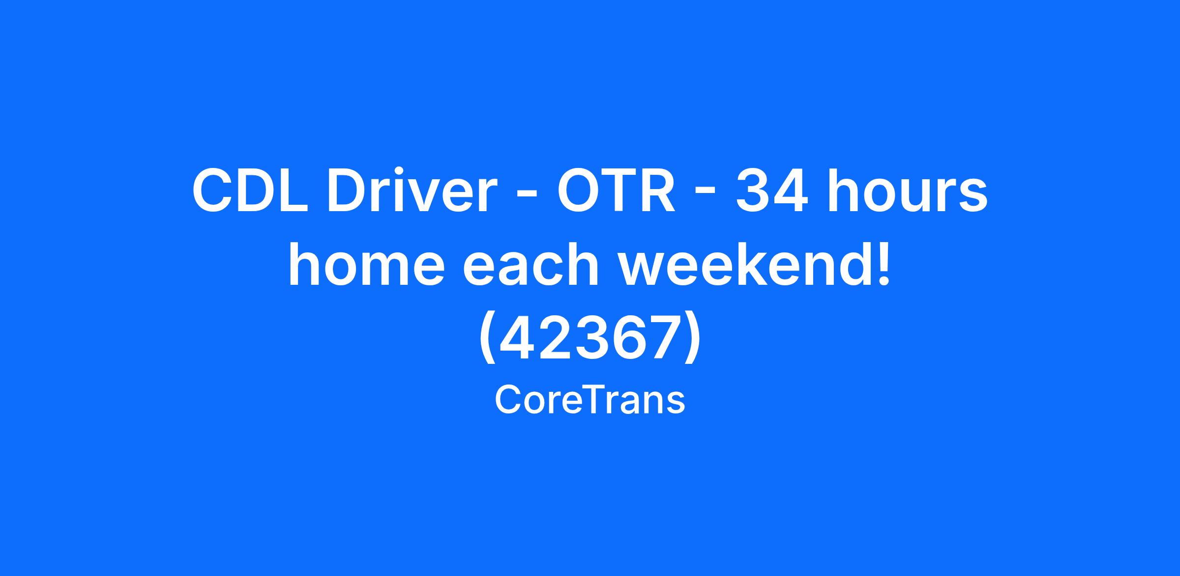 CDL Driver - OTR - 34 hours home each weekend! (42367)