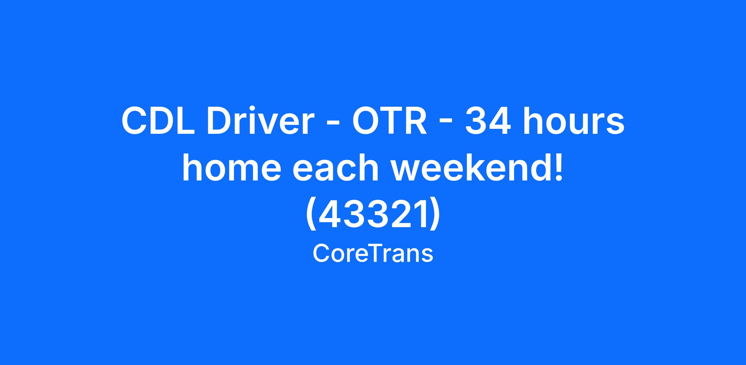 CDL Driver - OTR - 34 hours home each weekend! (43321)