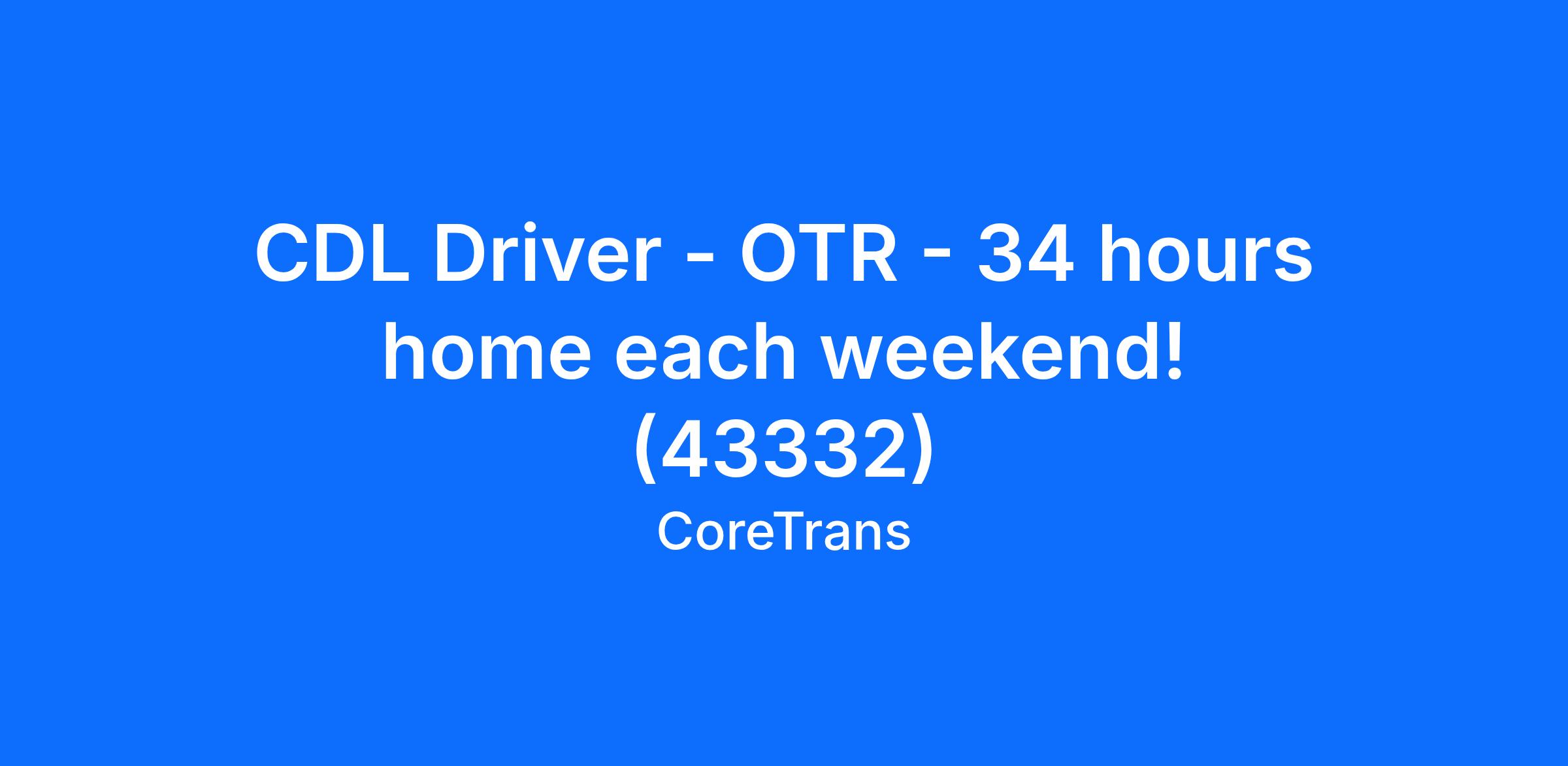 CDL Driver - OTR - 34 hours home each weekend! (43332)