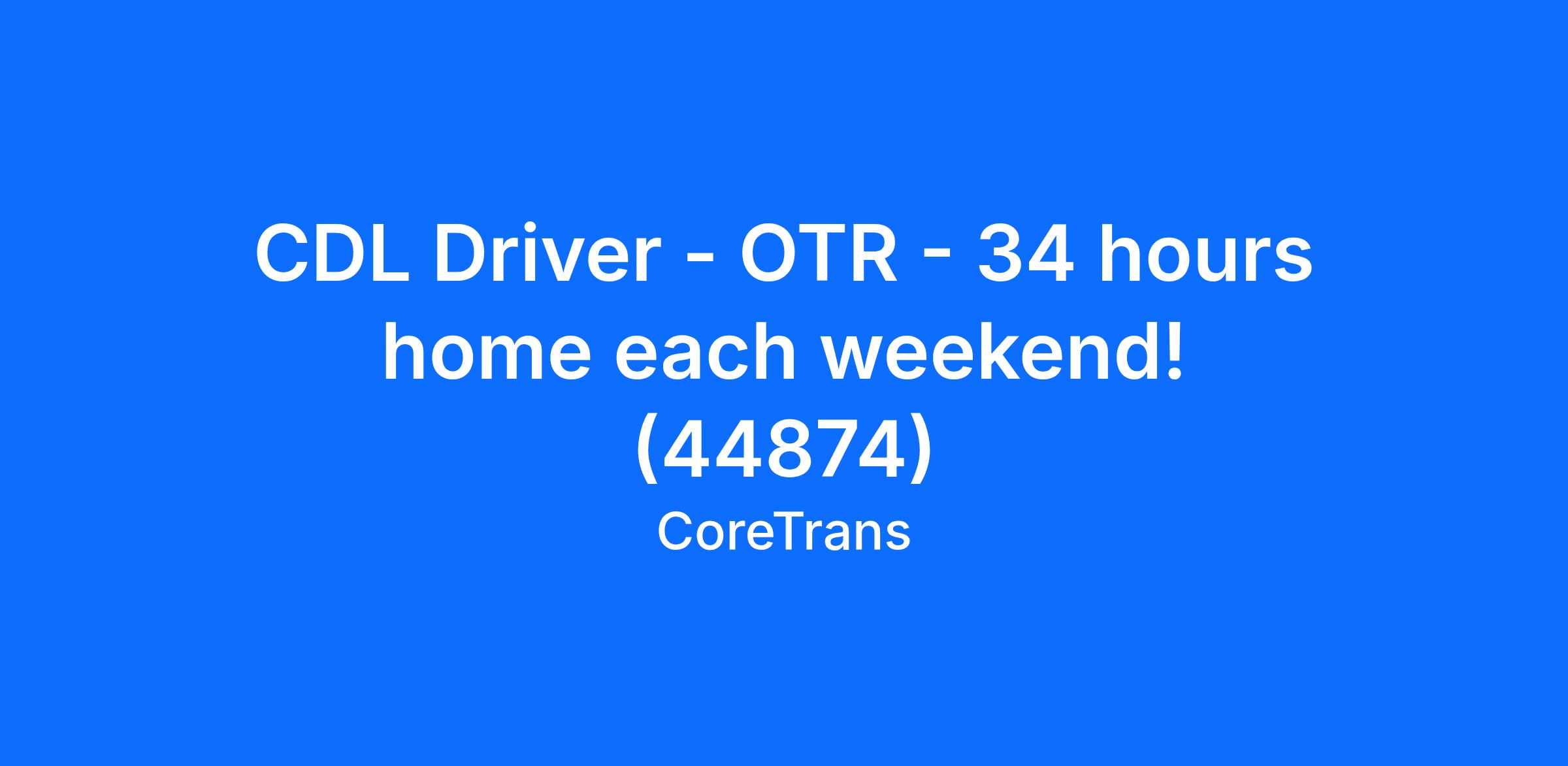 CDL Driver - OTR - 34 hours home each weekend! (44874)