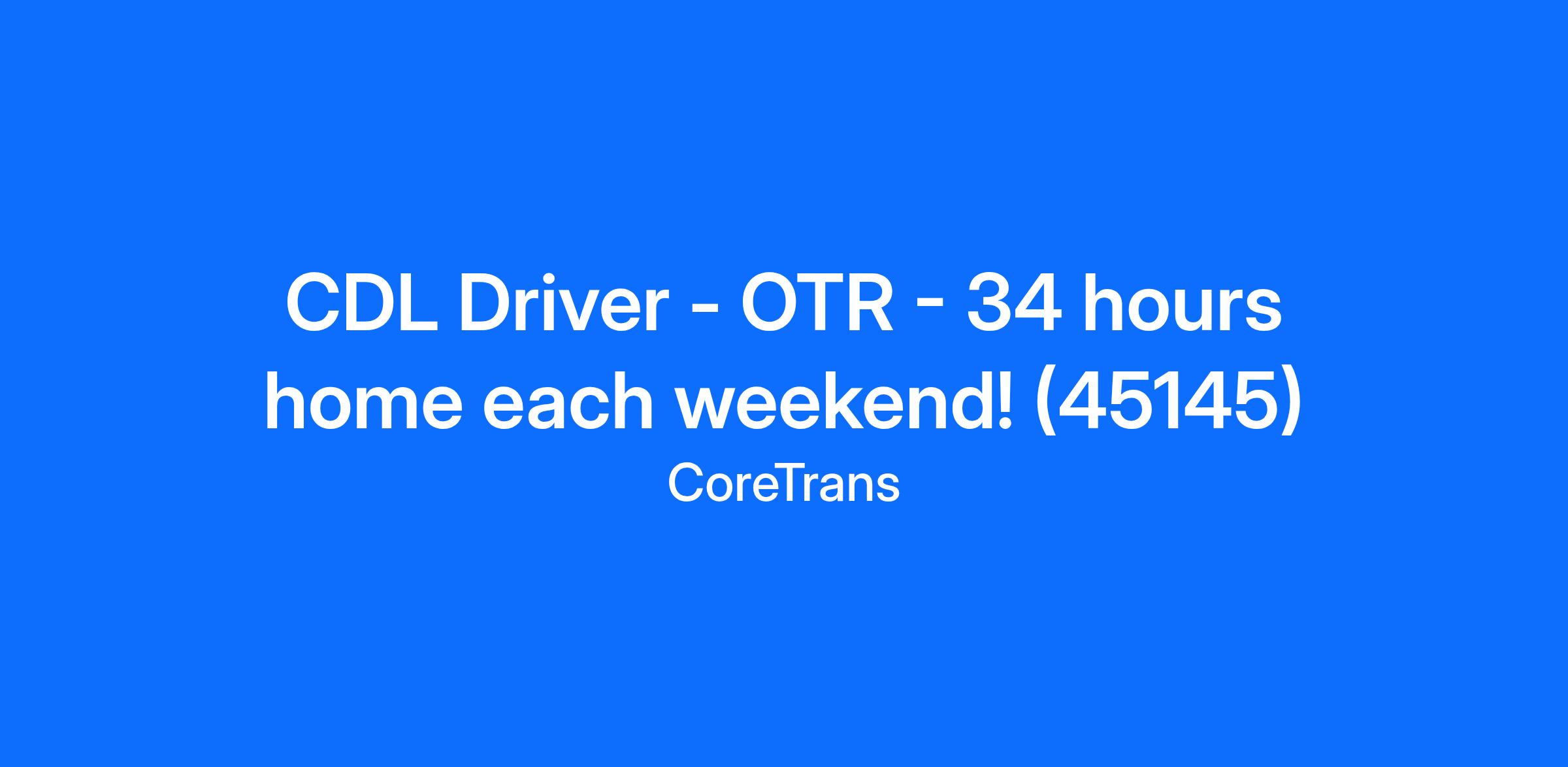 CDL Driver - OTR - 34 hours home each weekend! (45145)