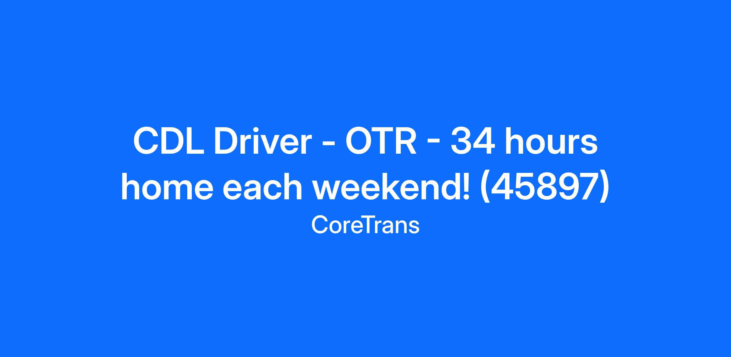 CDL Driver - OTR - 34 hours home each weekend! (45897)