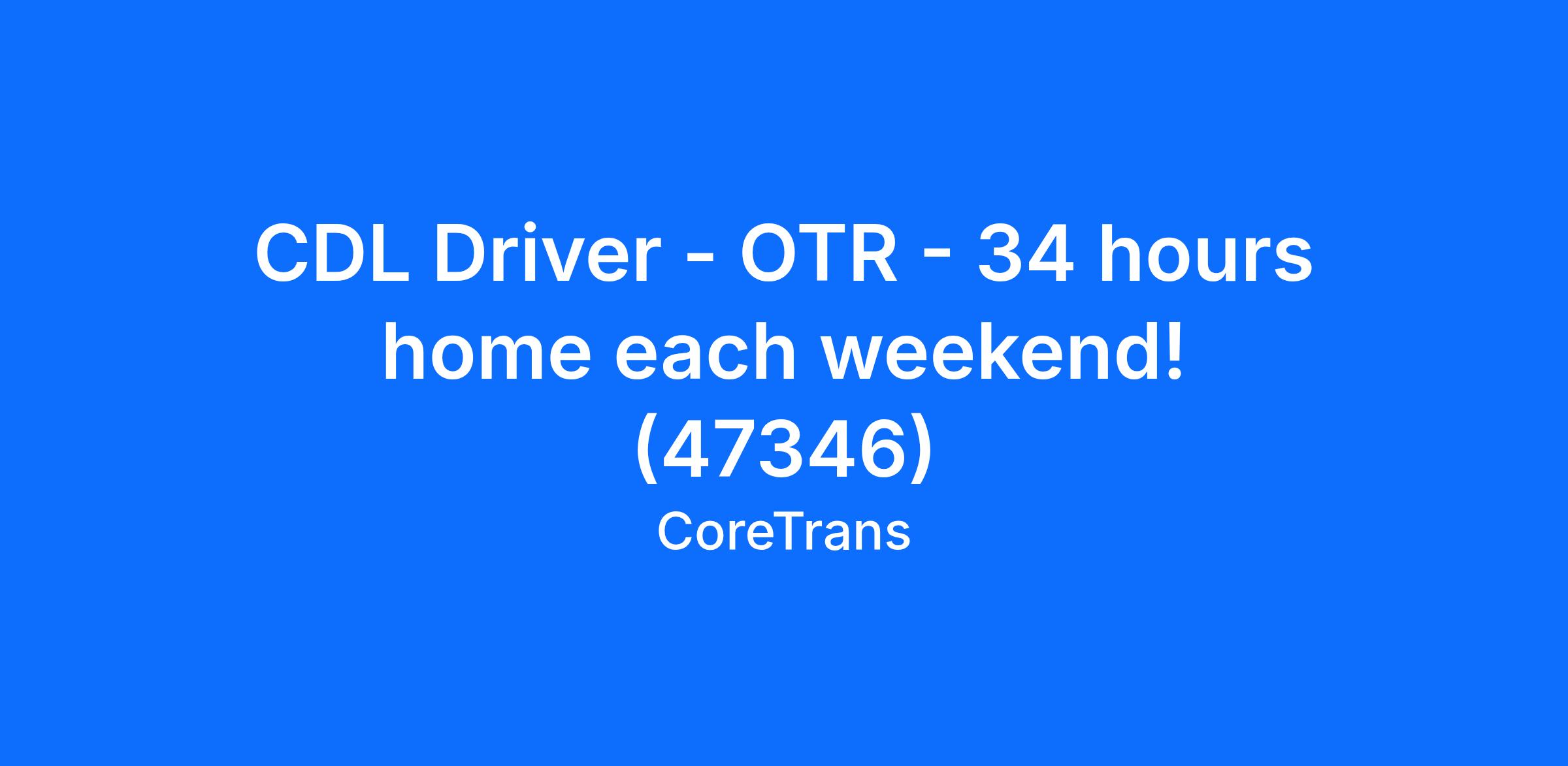 CDL Driver - OTR - 34 hours home each weekend! (47346)