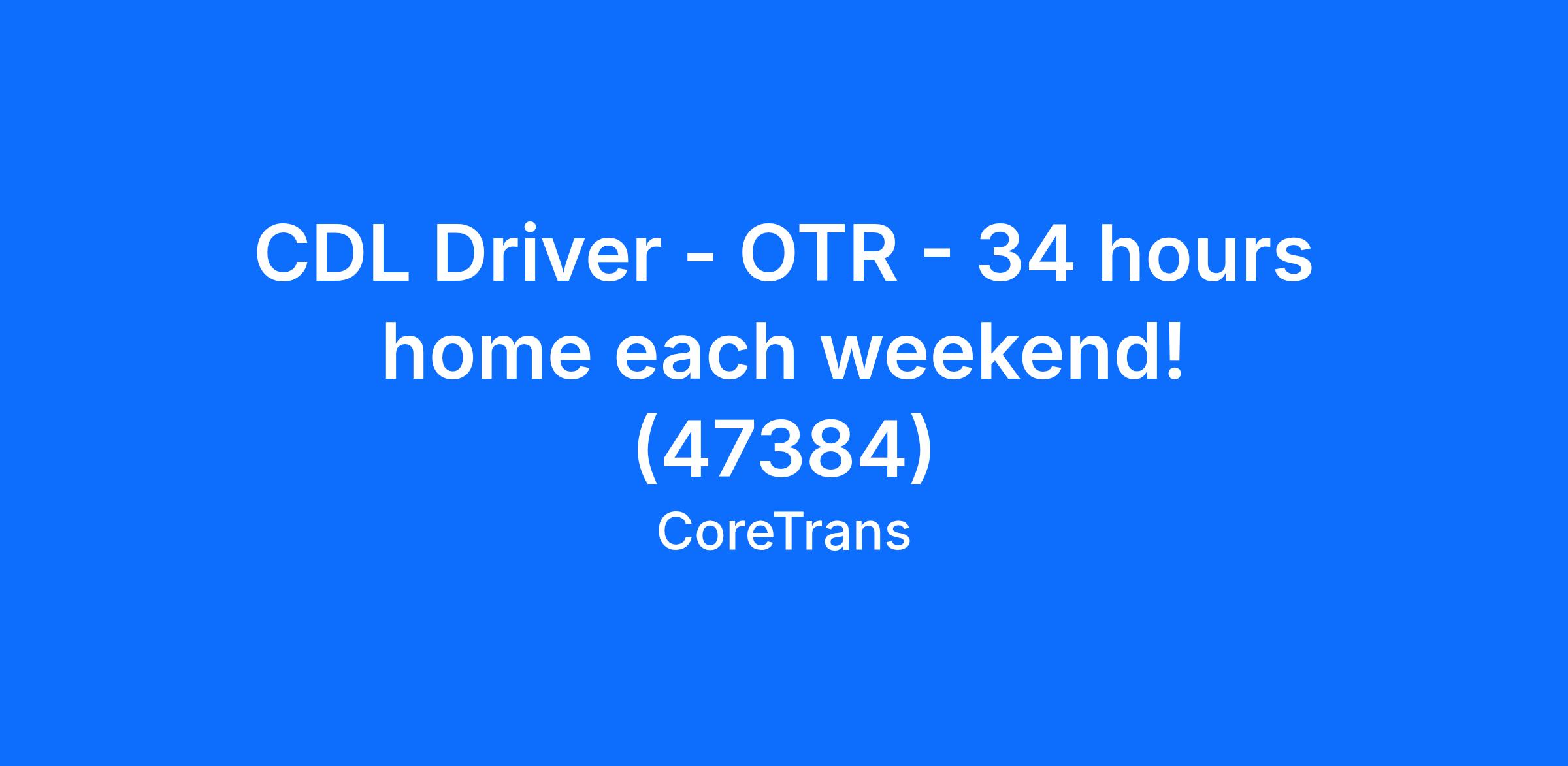 CDL Driver - OTR - 34 hours home each weekend! (47384)