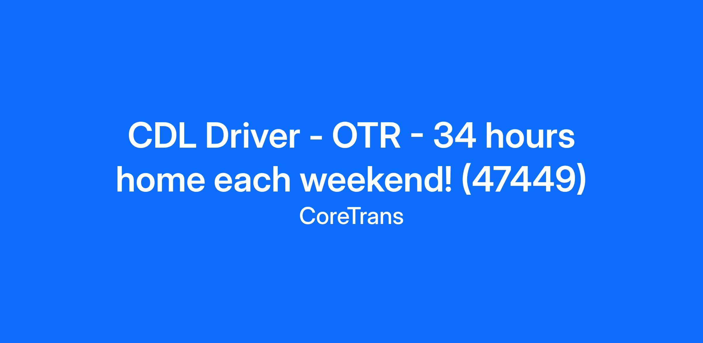 CDL Driver - OTR - 34 hours home each weekend! (47449)