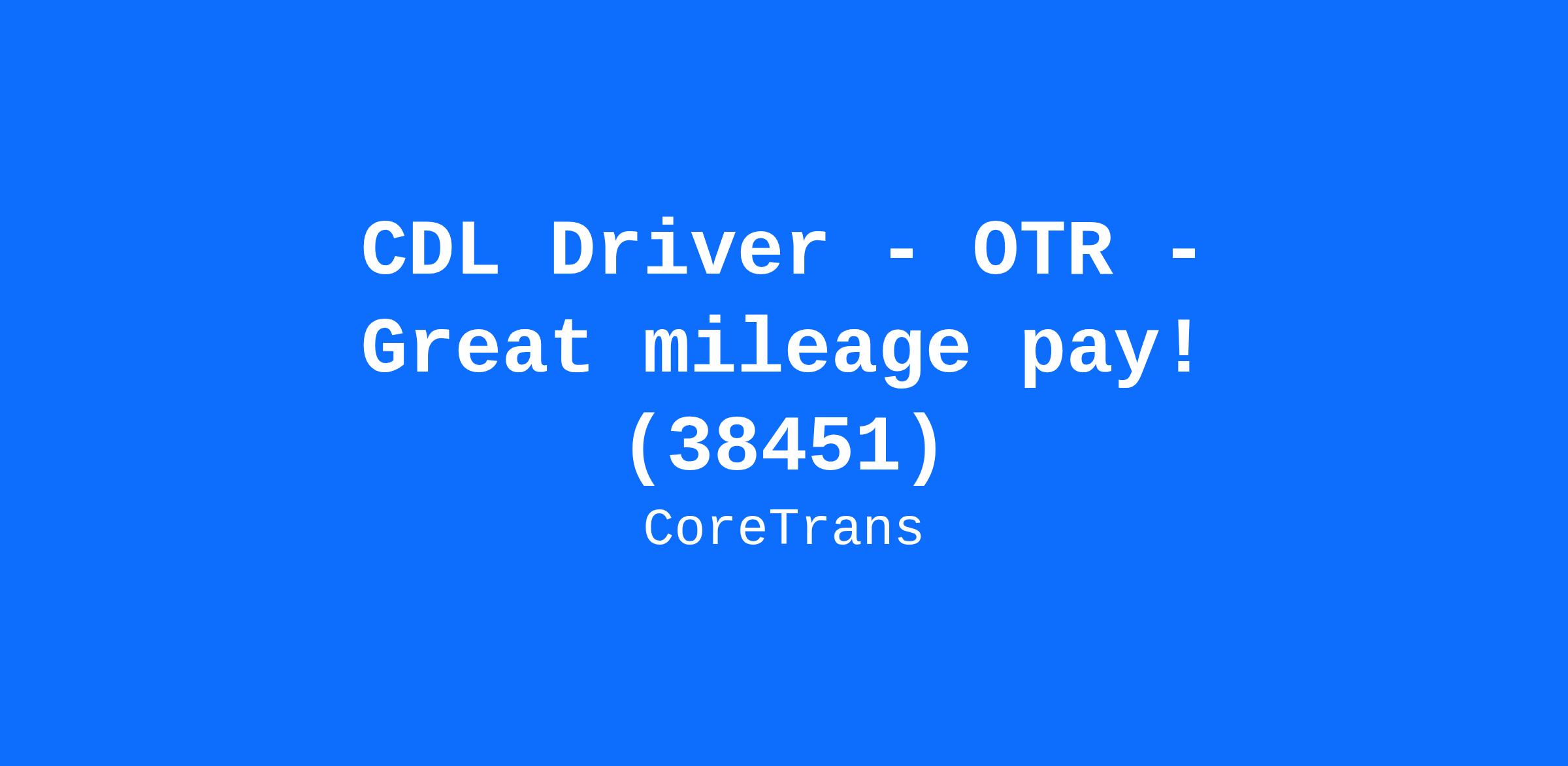 CDL Driver - OTR - Great mileage pay! (38451)
