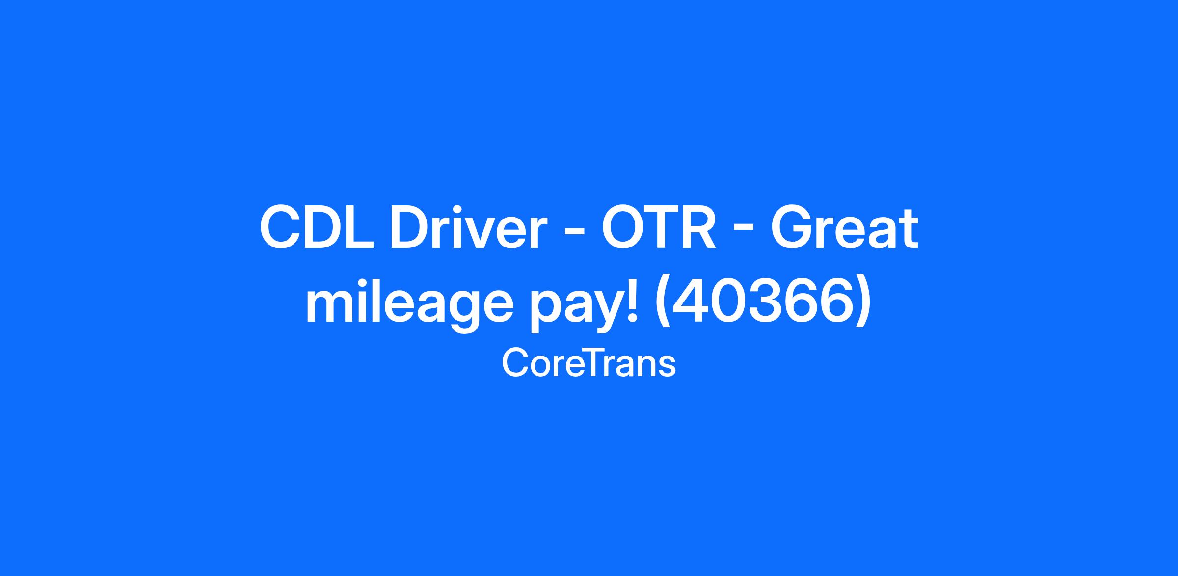 CDL Driver - OTR - Great mileage pay! (40366)