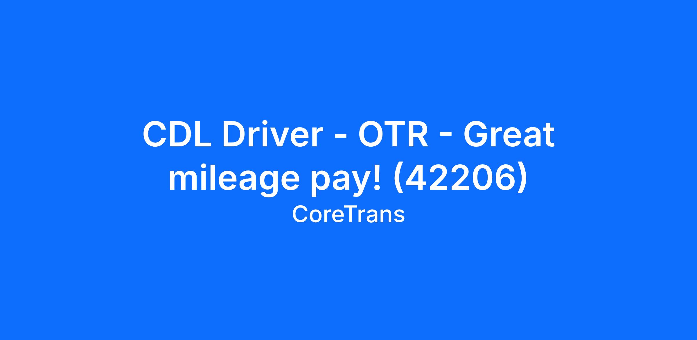CDL Driver - OTR - Great mileage pay! (42206)