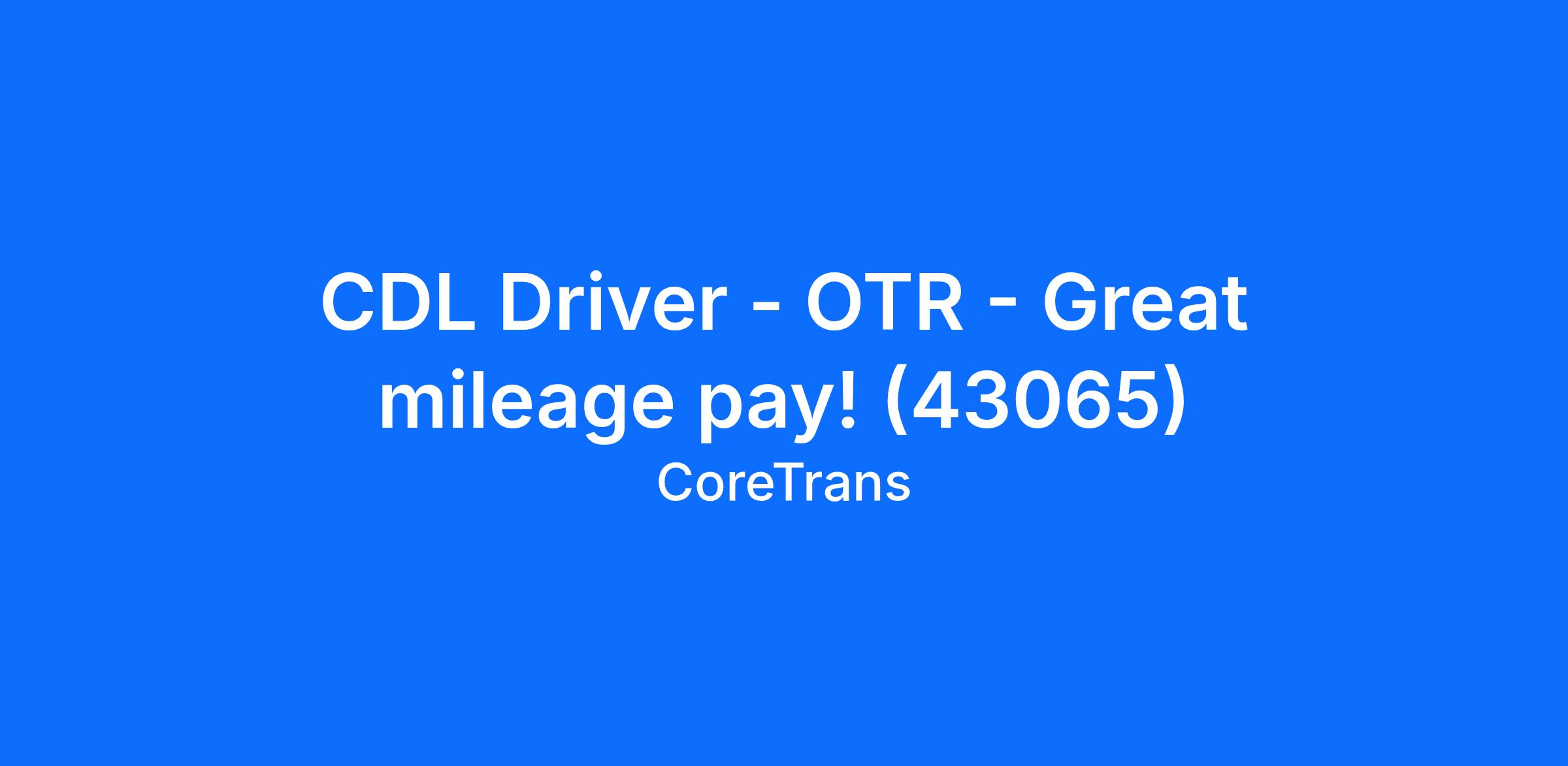 CDL Driver - OTR - Great mileage pay! (43065)