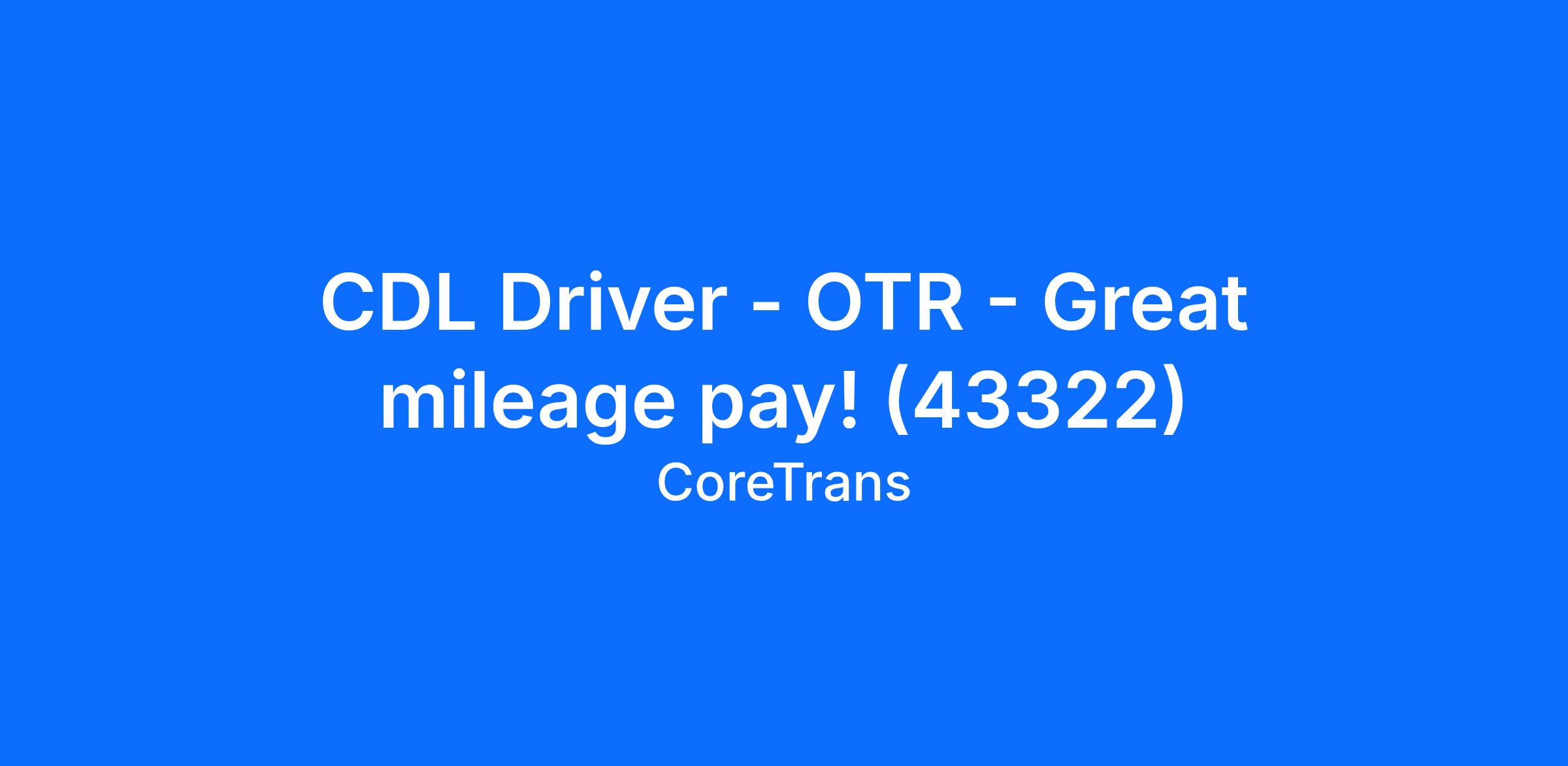 CDL Driver - OTR - Great mileage pay! (43322)