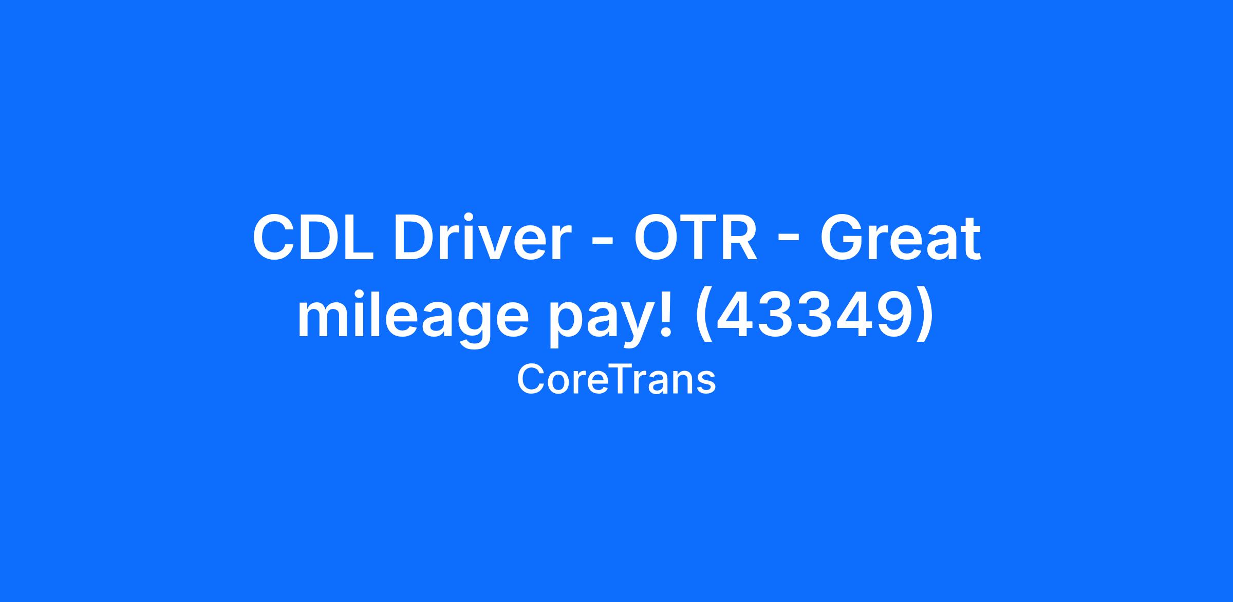 CDL Driver - OTR - Great mileage pay! (43349)