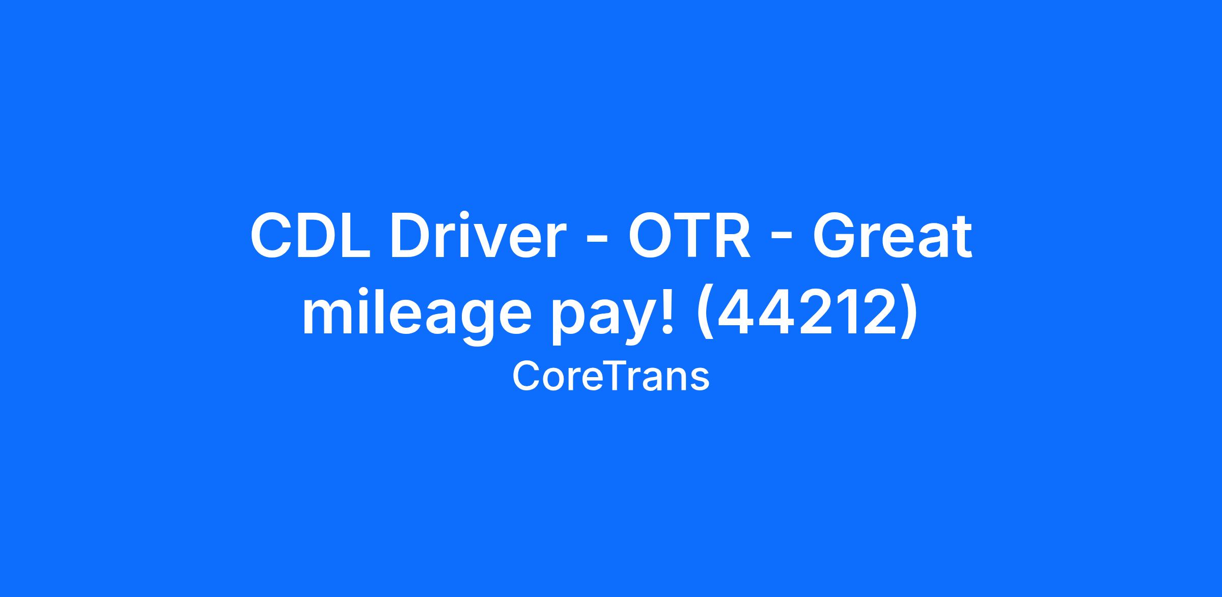 CDL Driver - OTR - Great mileage pay! (44212)