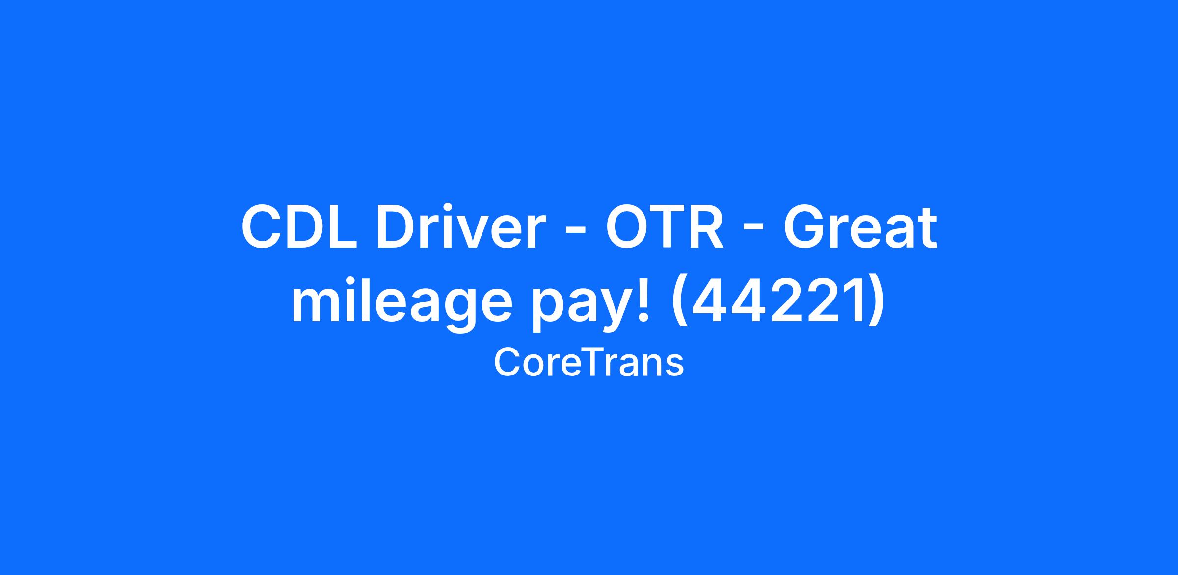 CDL Driver - OTR - Great mileage pay! (44221)