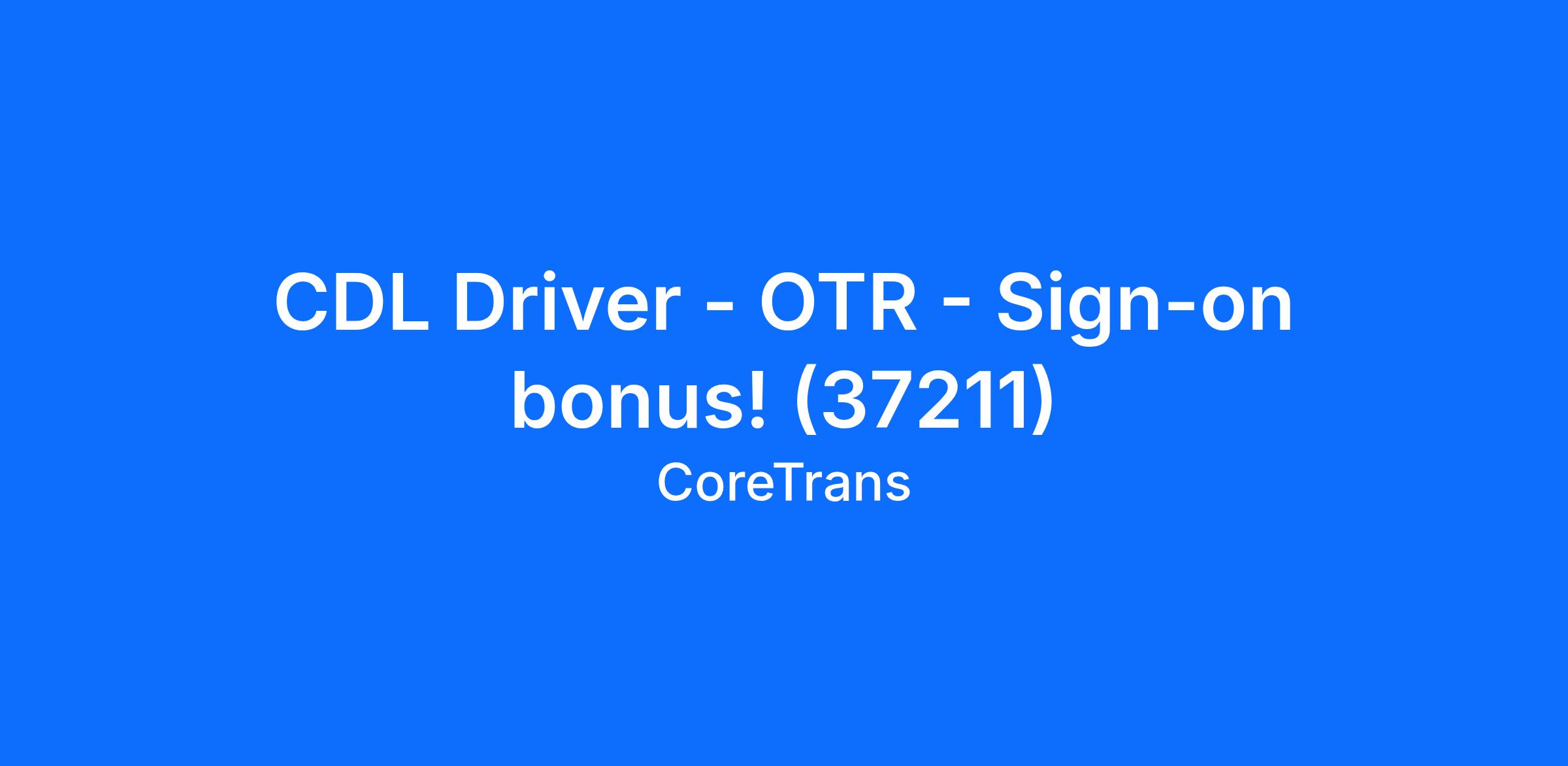 CDL Driver - OTR - Sign-on bonus! (37211)