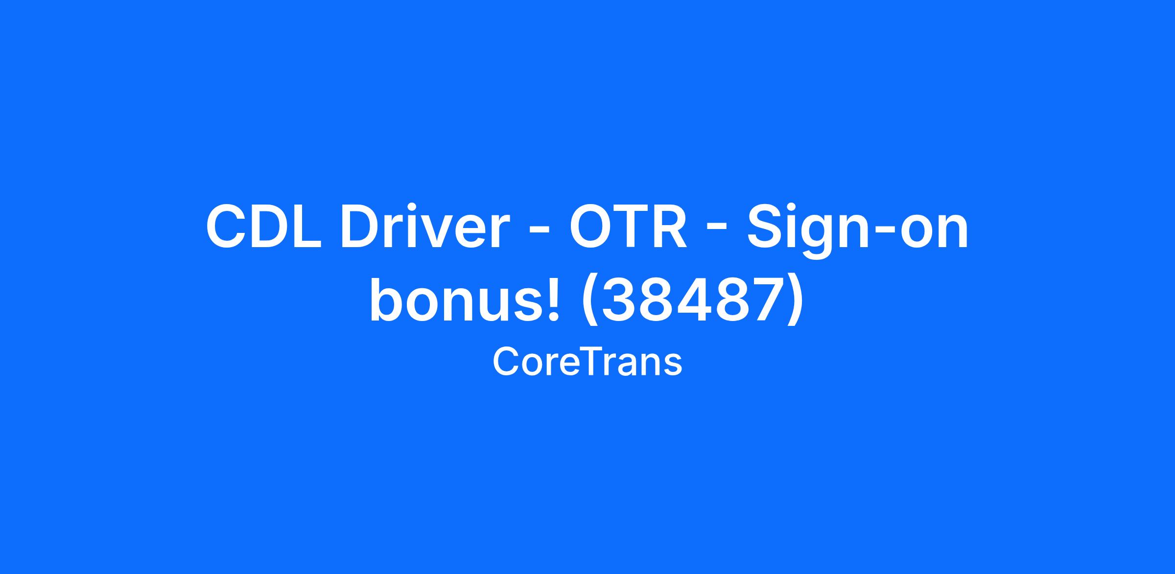 CDL Driver - OTR - Sign-on bonus! (38487)