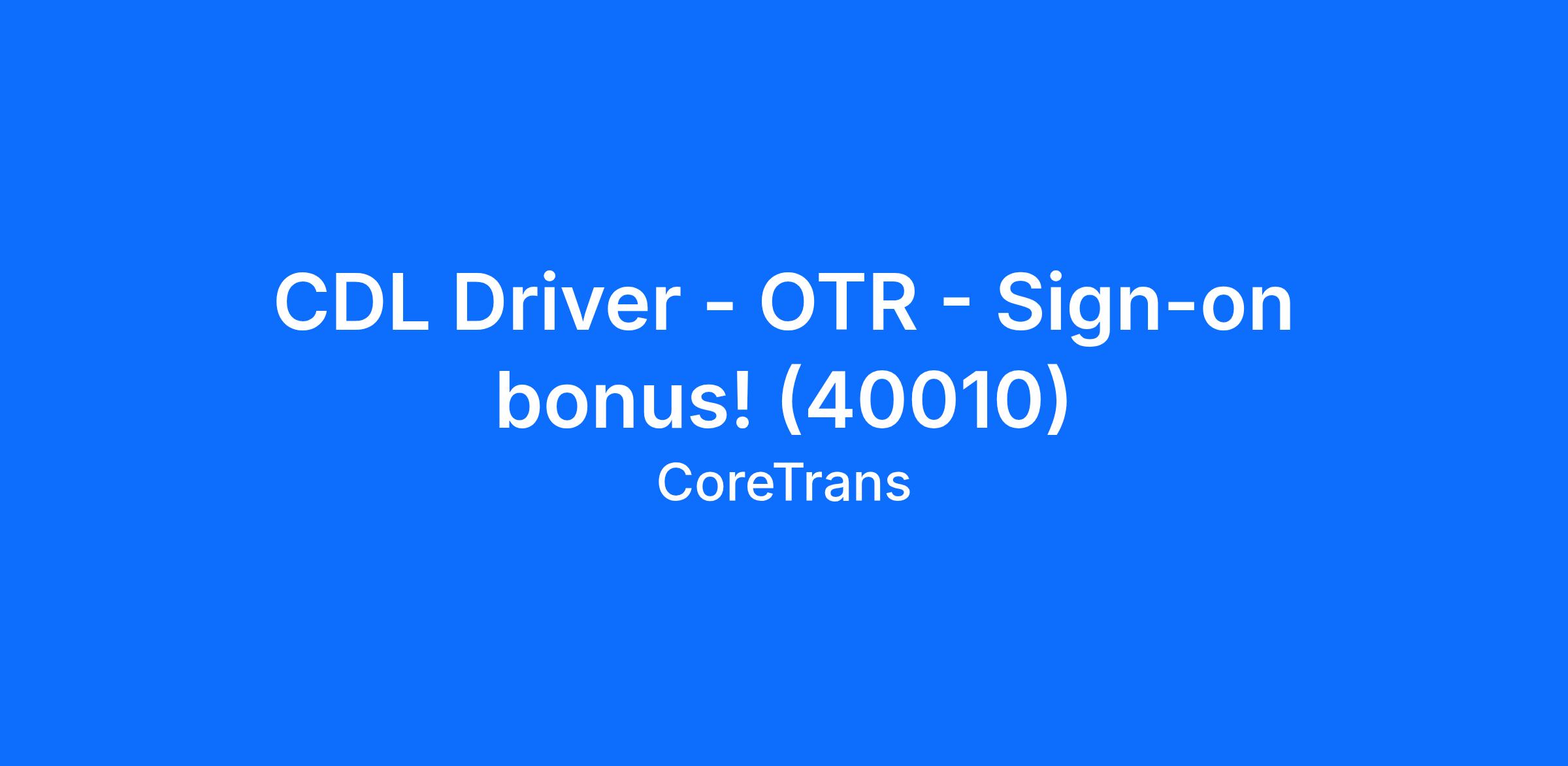 CDL Driver - OTR - Sign-on bonus! (40010)