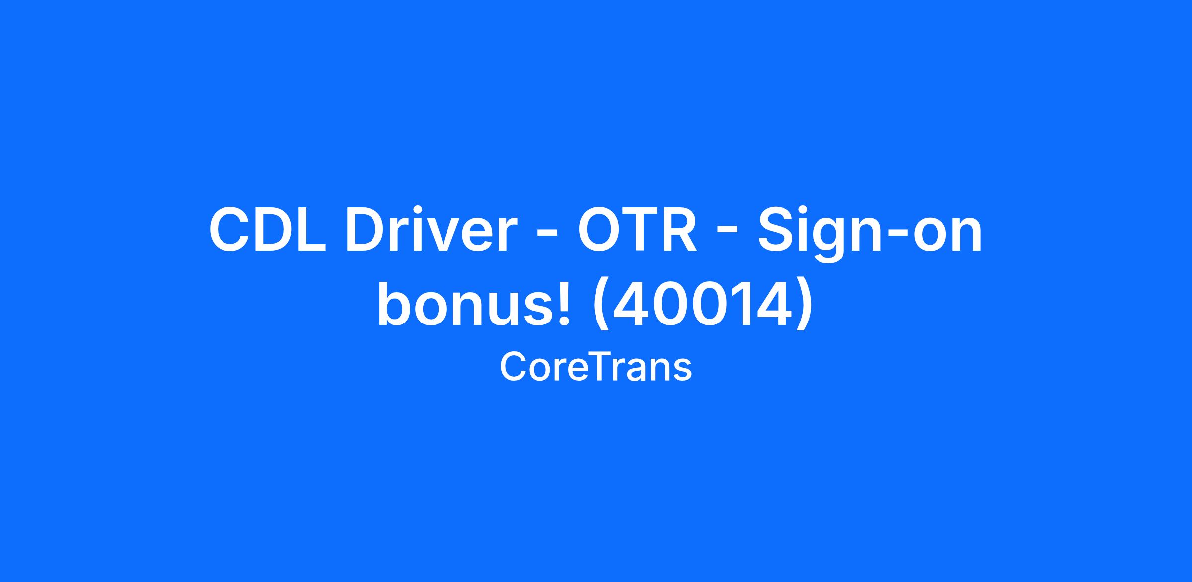 CDL Driver - OTR - Sign-on bonus! (40014)