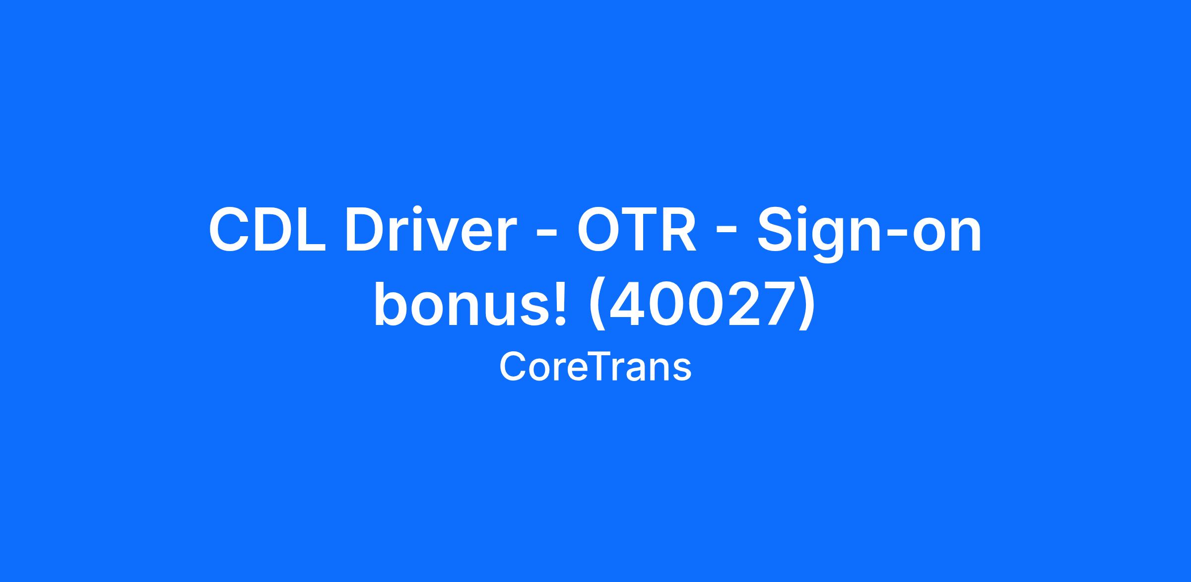 CDL Driver - OTR - Sign-on bonus! (40027)