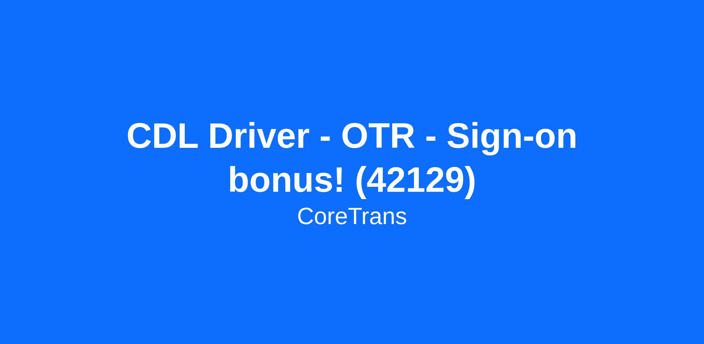 CDL Driver - OTR - Sign-on bonus! (42129)