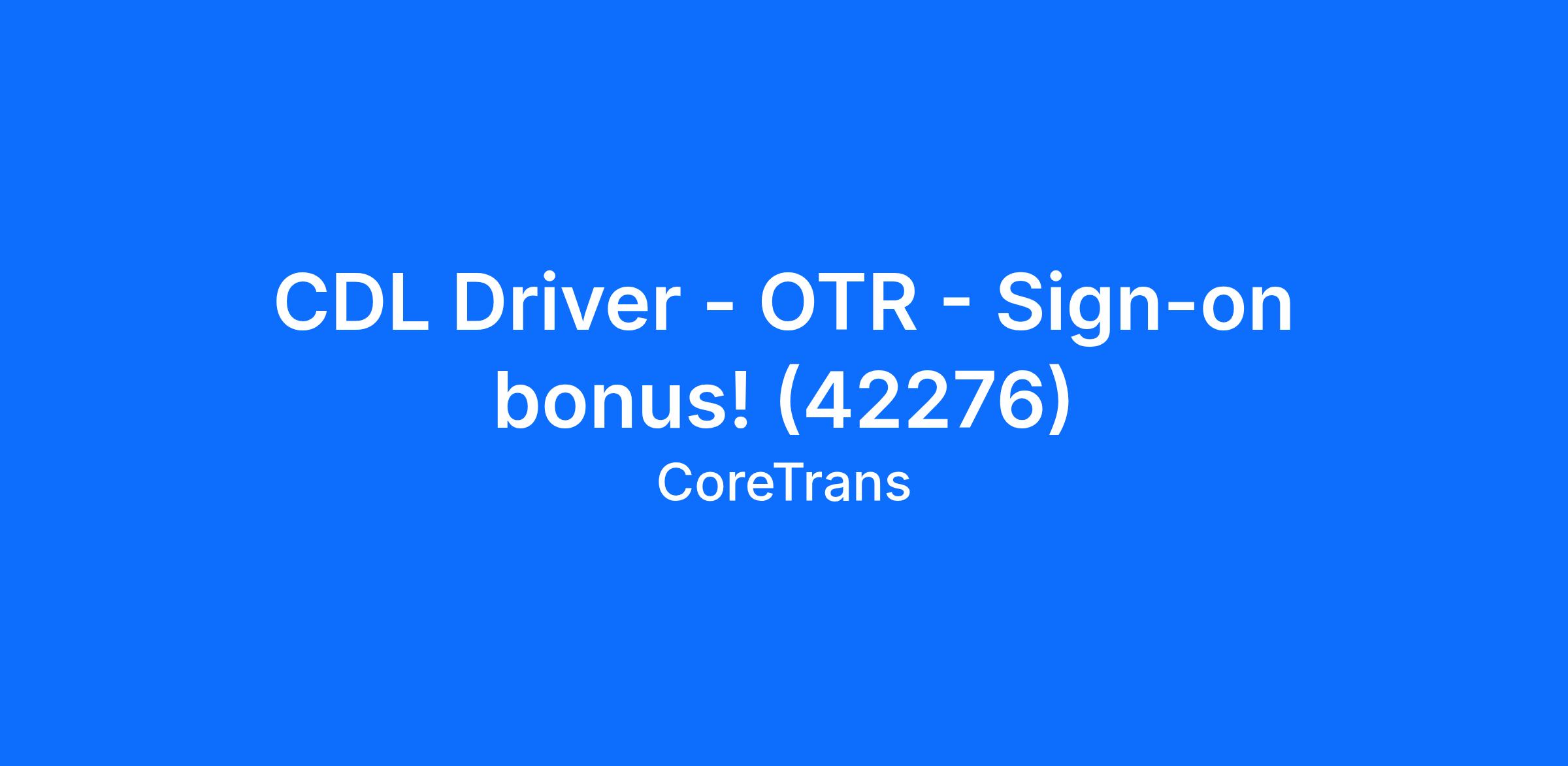 CDL Driver - OTR - Sign-on bonus! (42276)