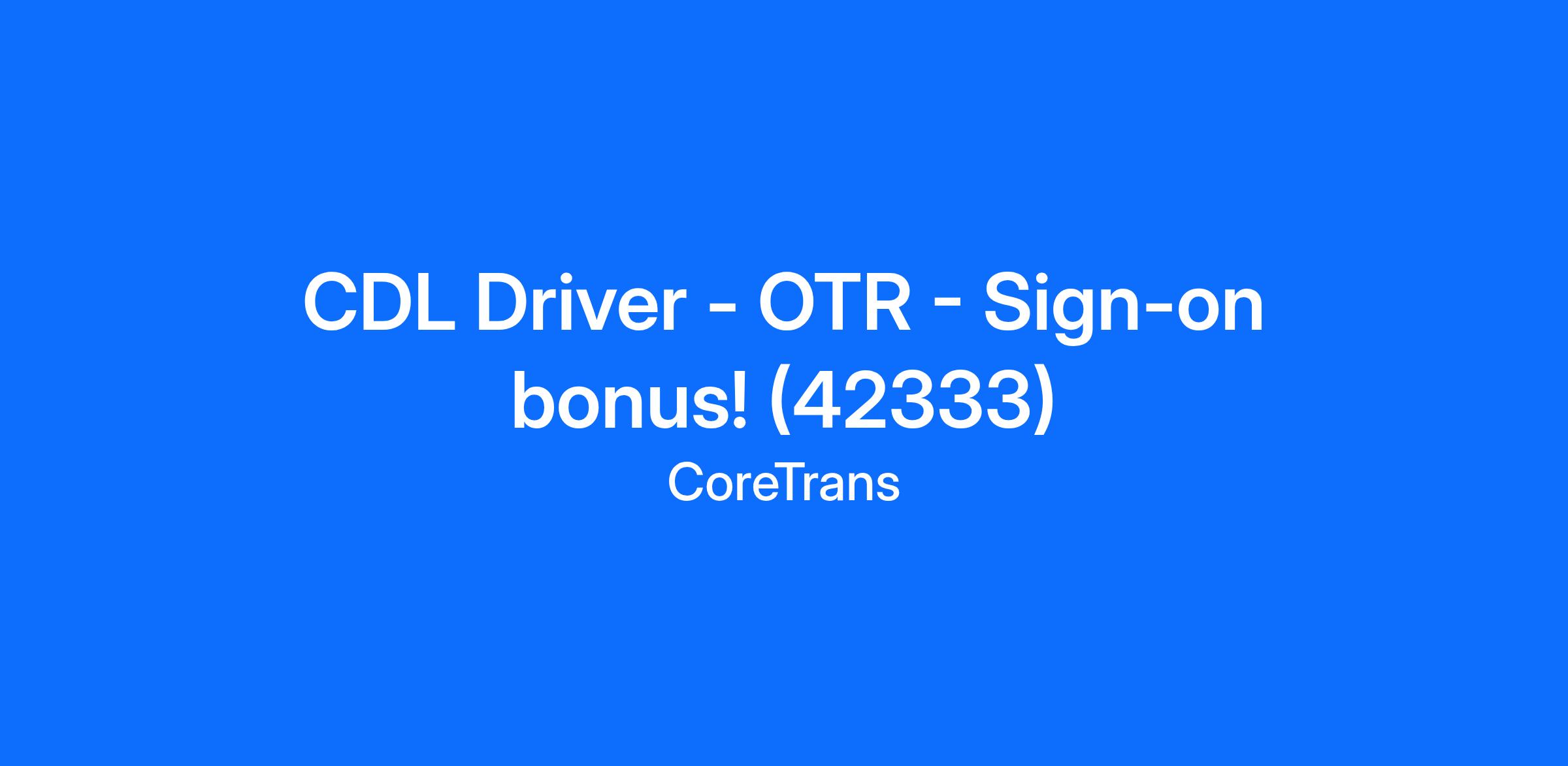 CDL Driver - OTR - Sign-on bonus! (42333)