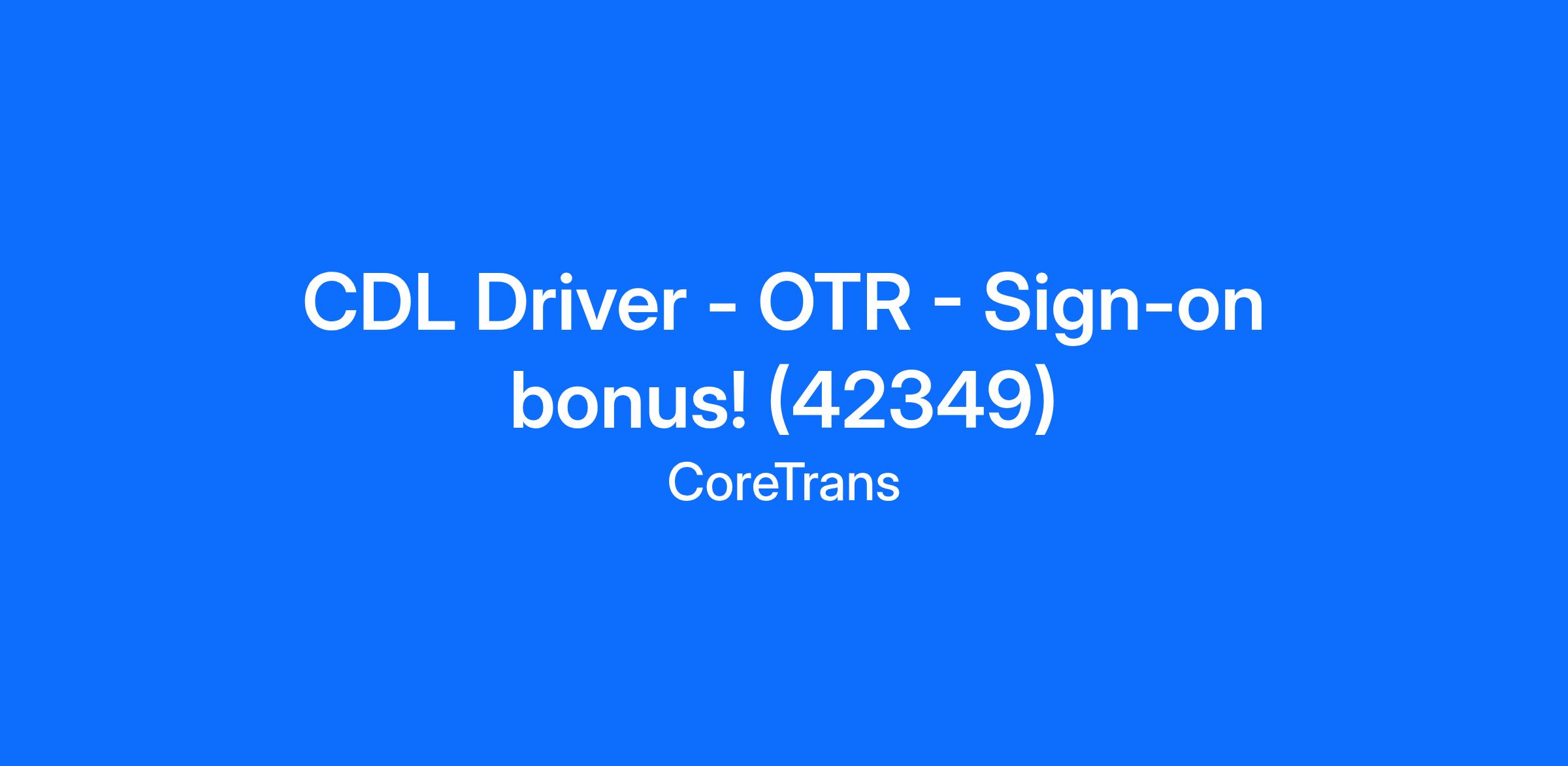 CDL Driver - OTR - Sign-on bonus! (42349)