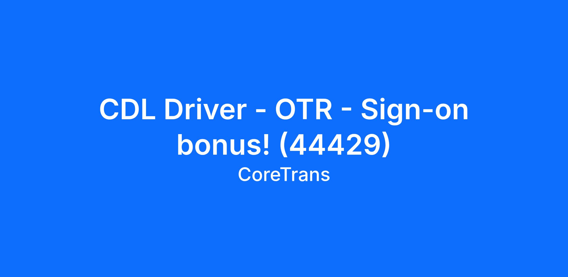 CDL Driver - OTR - Sign-on bonus! (44429)