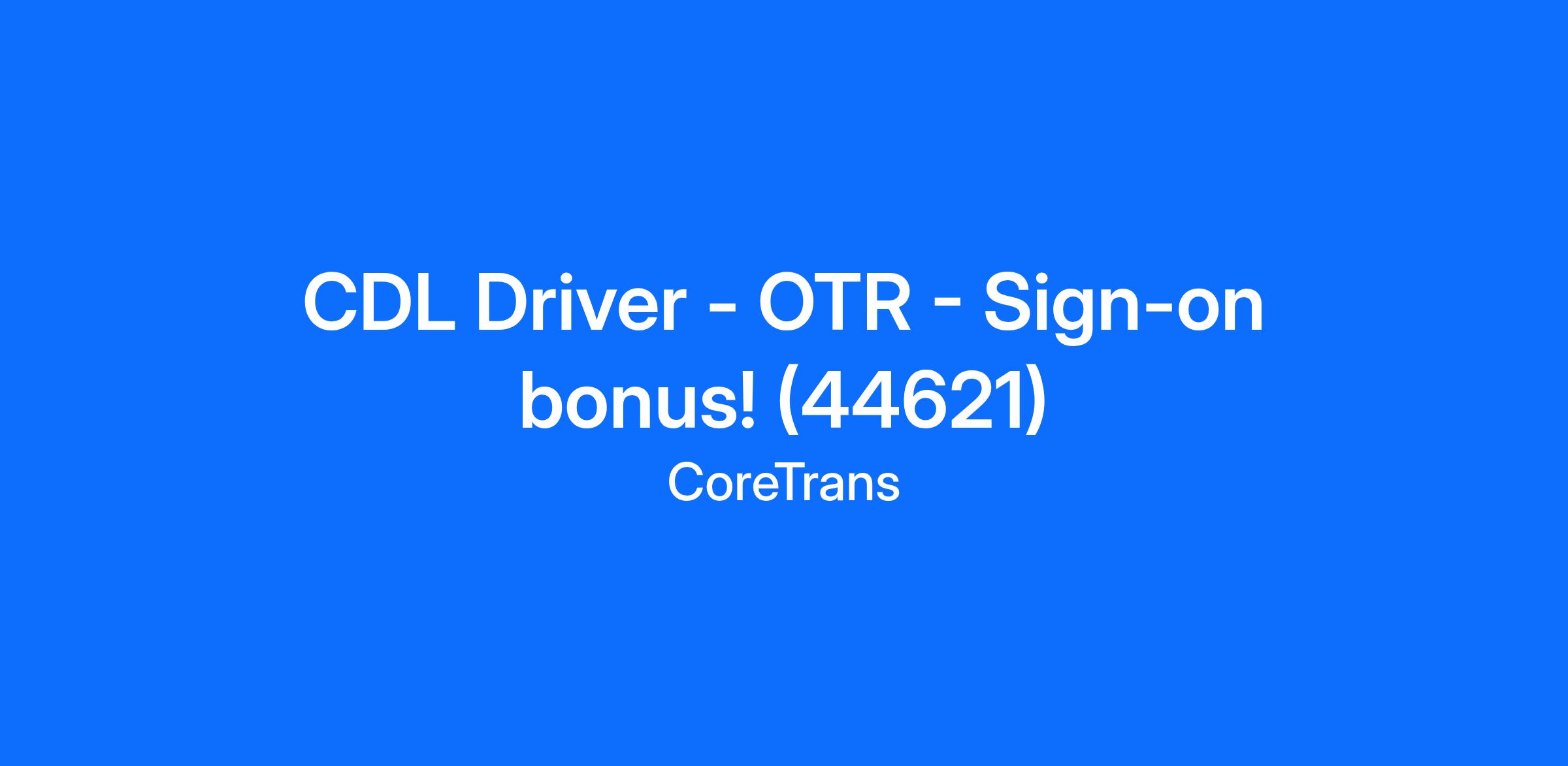 CDL Driver - OTR - Sign-on bonus! (44621)