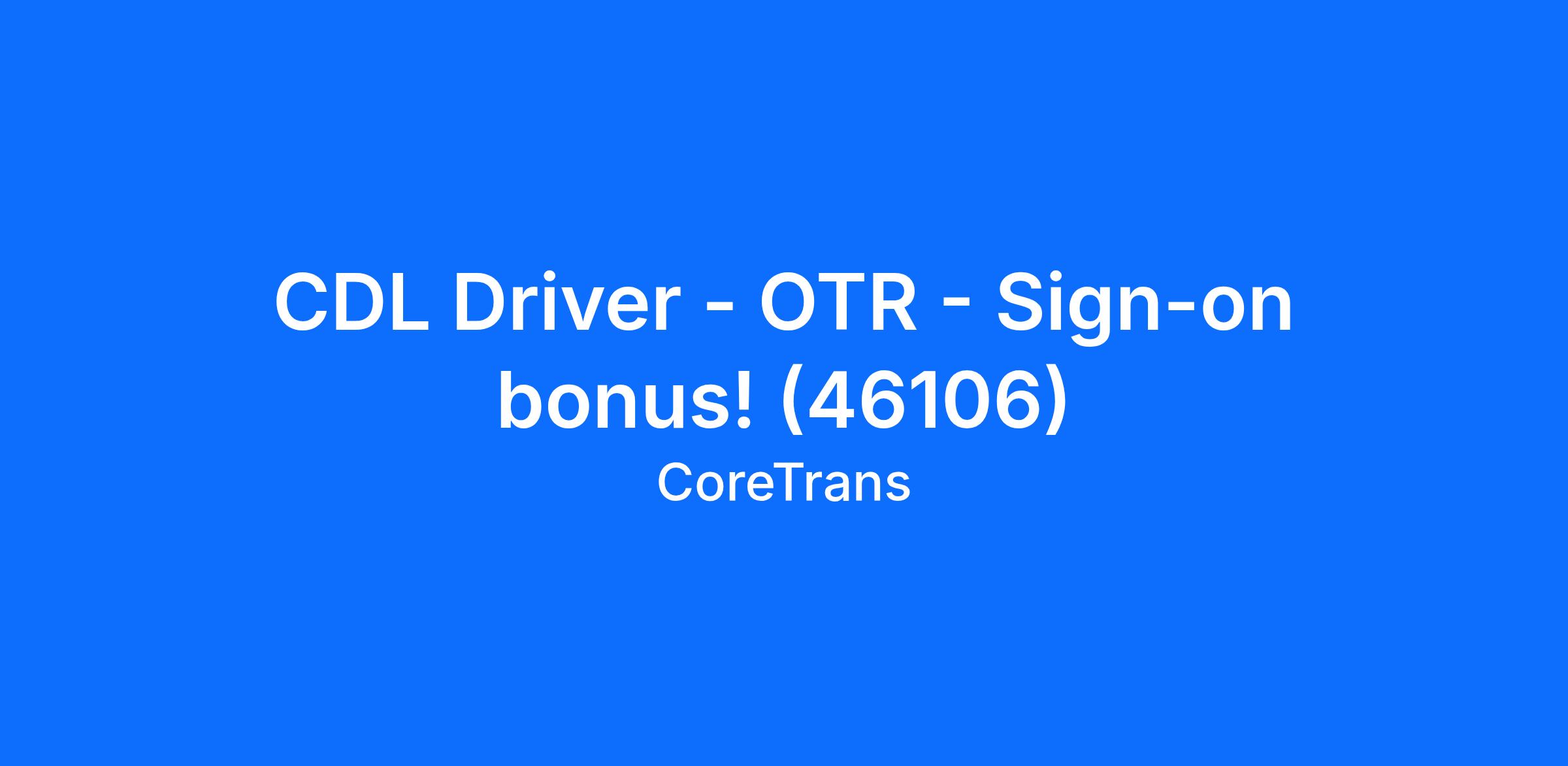 CDL Driver - OTR - Sign-on bonus! (46106)