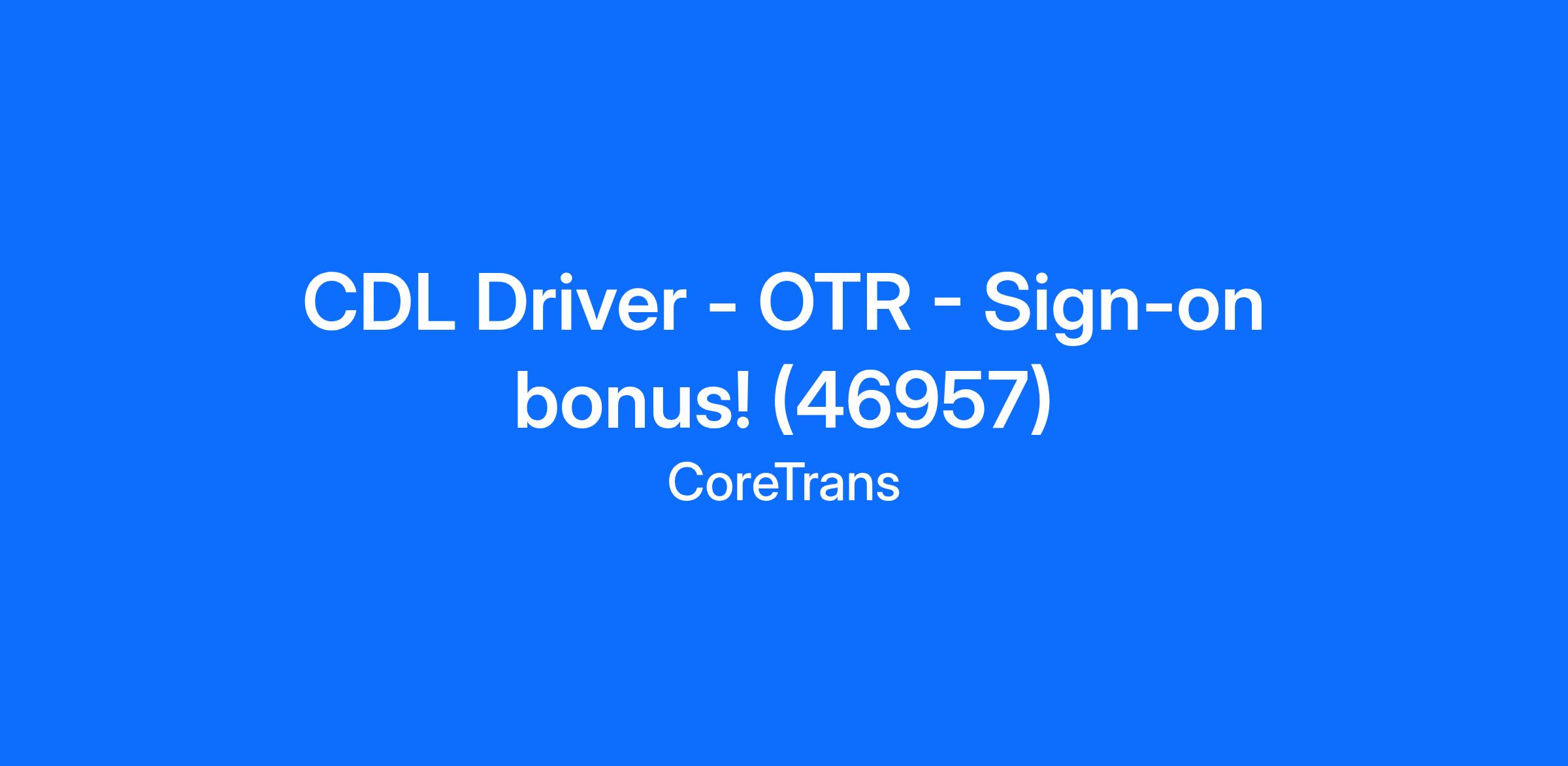 CDL Driver - OTR - Sign-on bonus! (46957)