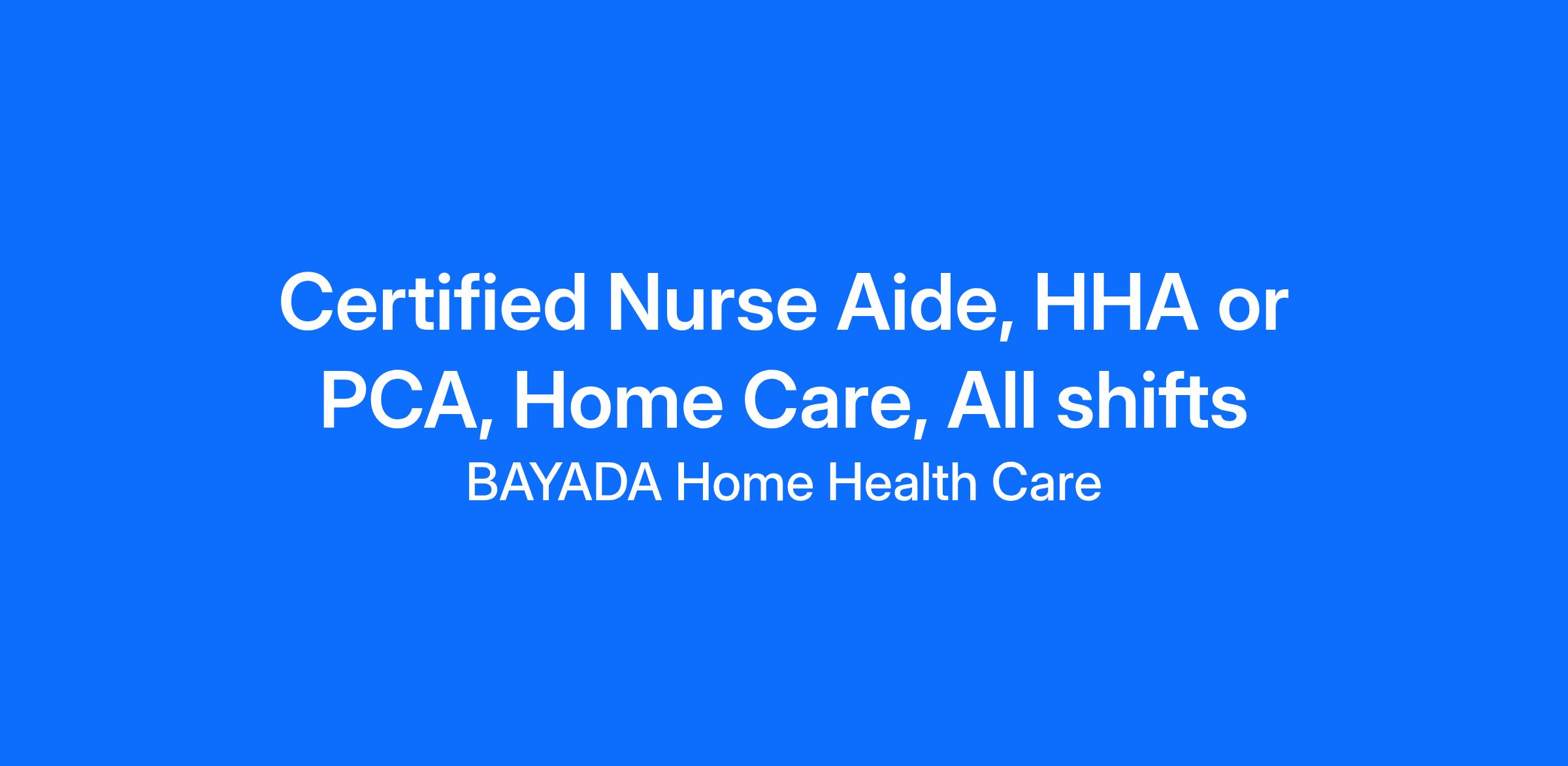 Bayada Home Health Care - JobID: 830####### [CNA / Health Aide] As a Certified Nurse Aide at Bayada Home Health Care, you'll: Do light housekeeping; Assist in bathing, dressing, grooming, toileting, nail care, exercises, transfers and other daily living activities; Check vital signs, such as temperature, pulse, respiration; Do home management tasks, including laundry, meal preparation, bed making, etc; Assist with ambulation and medication...Hiring Immediately >>