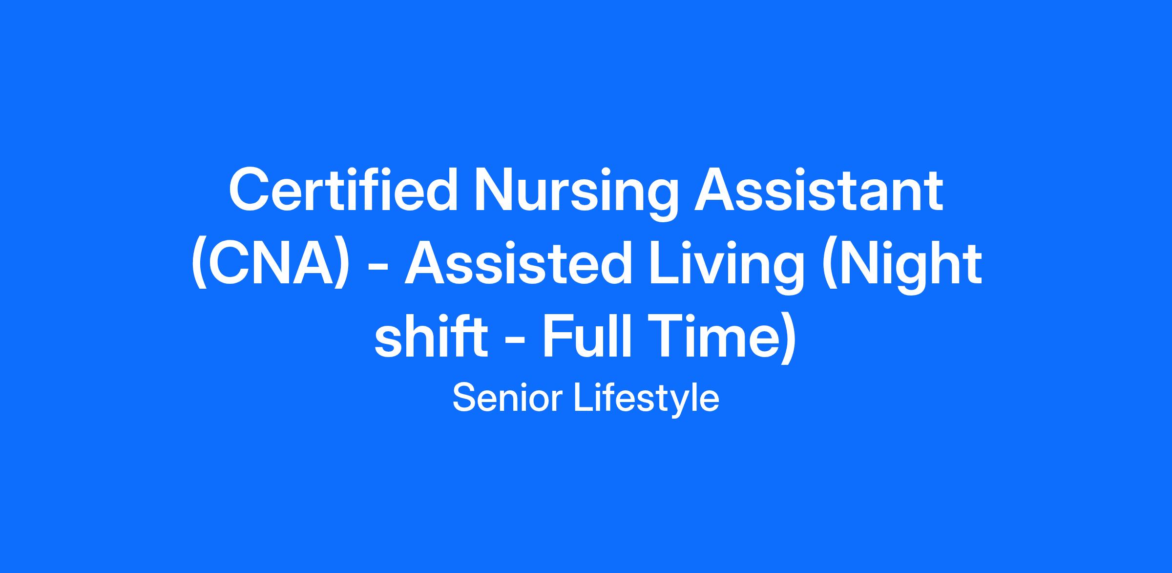 Certified Nursing Assistant (CNA) - Assisted Living (Night shift - Full Time)
