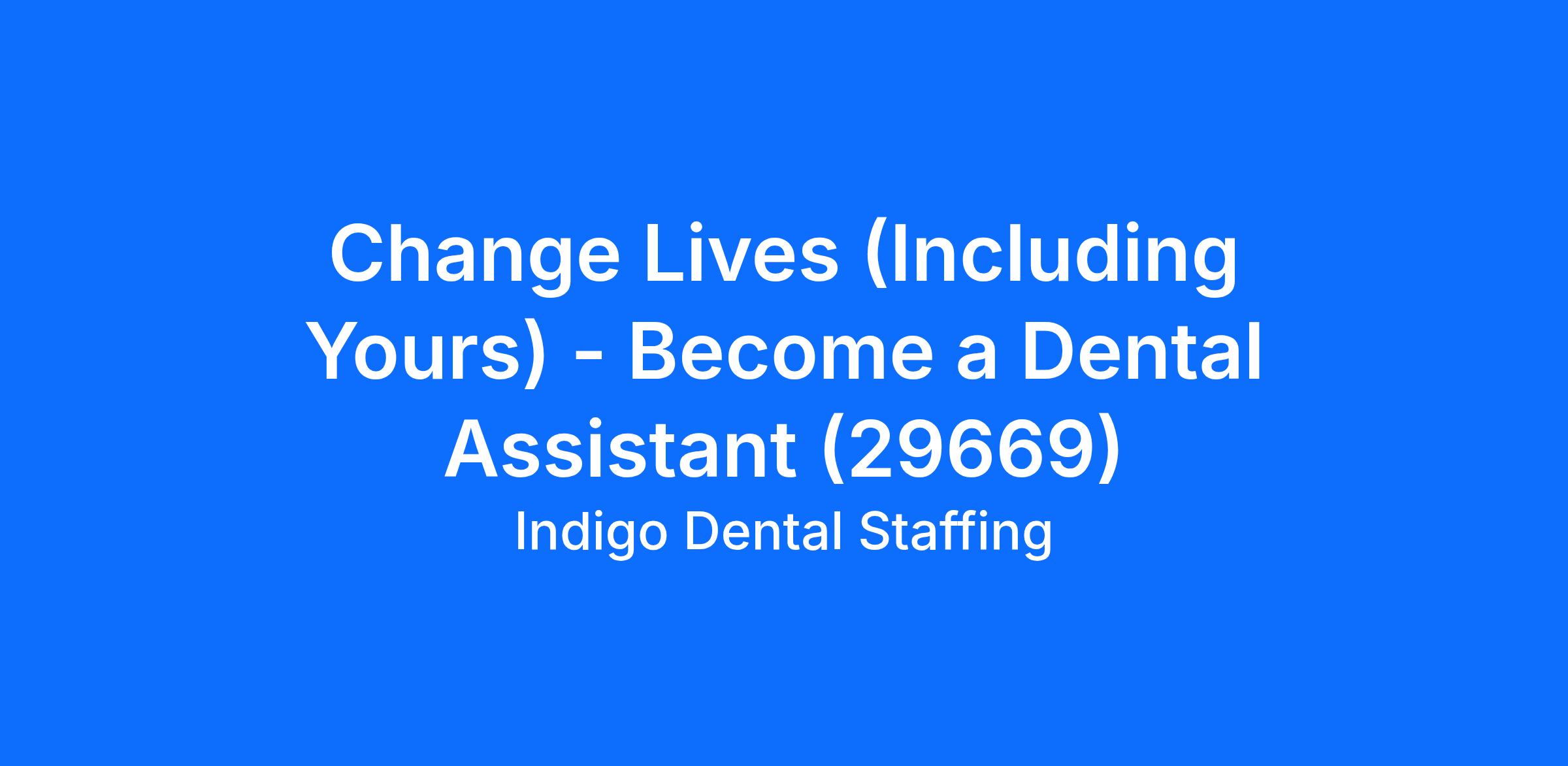 Change Lives (Including Yours) - Become a Dental Assistant (29669)