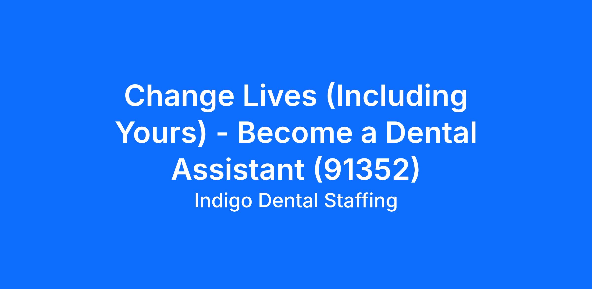 Change Lives (Including Yours) - Become a Dental Assistant (91352)