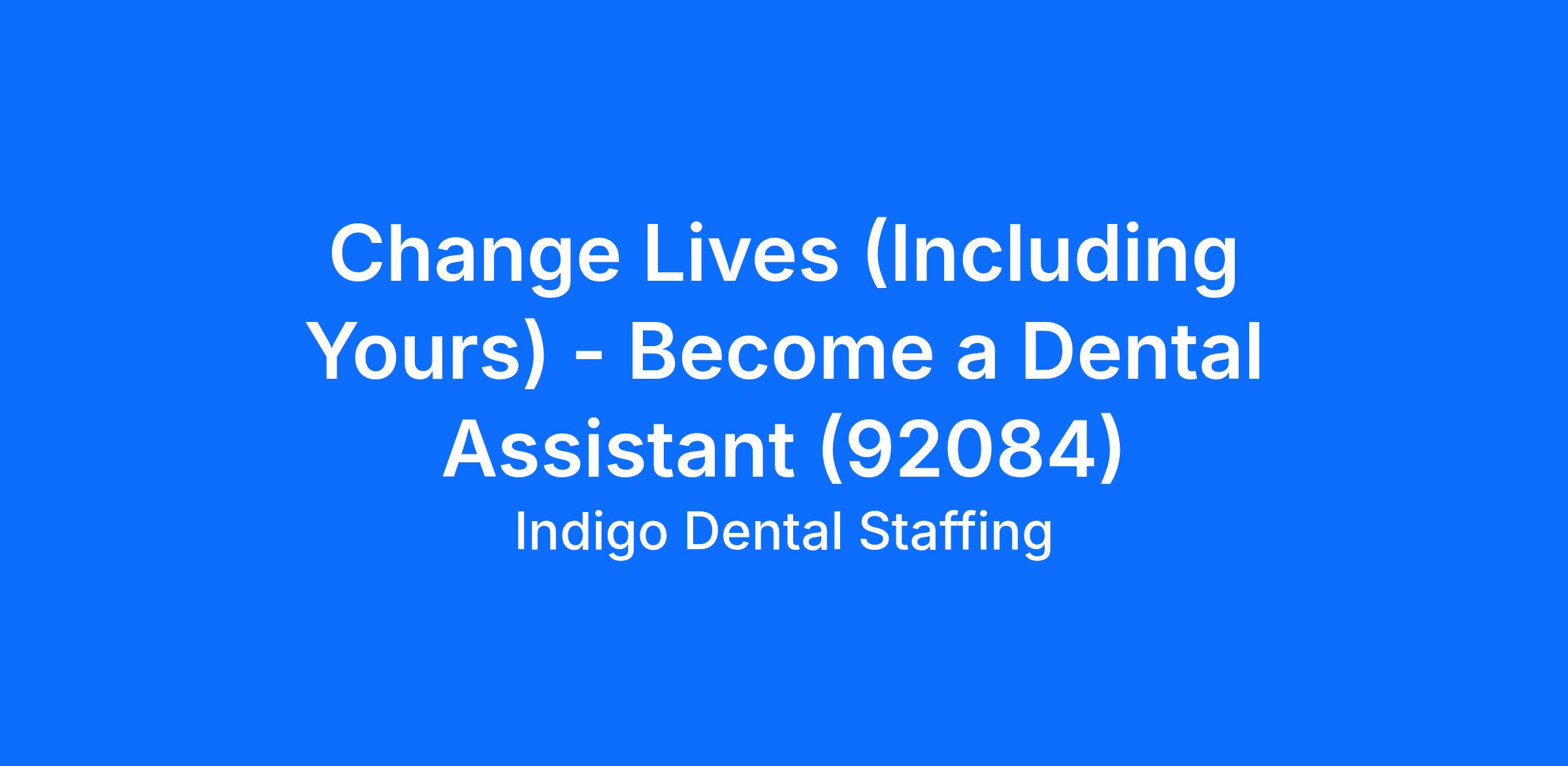 Change Lives (Including Yours) - Become a Dental Assistant (92084)