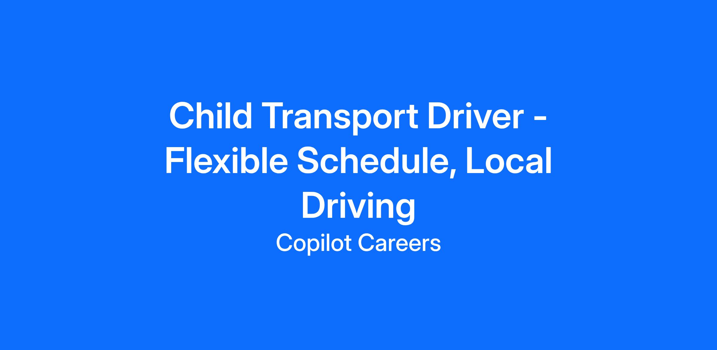 Child Transport Driver - Flexible Schedule, Local Driving
