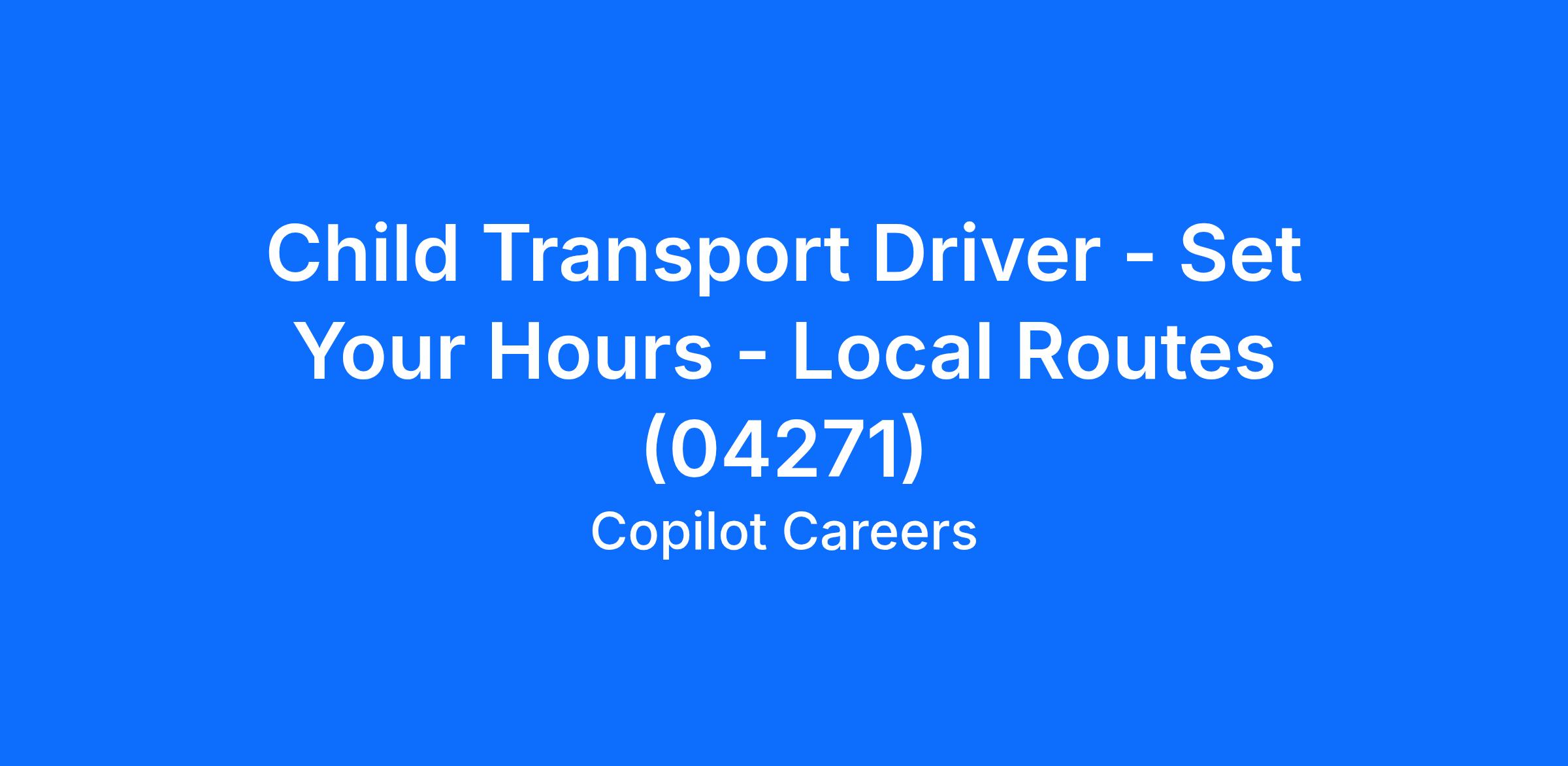 Child Transport Driver - Set Your Hours - Local Routes (04271)
