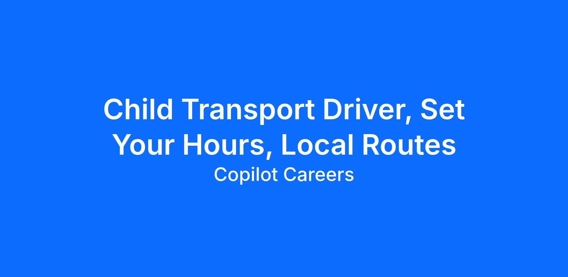 Child Transport Driver, Set Your Hours, Local Routes