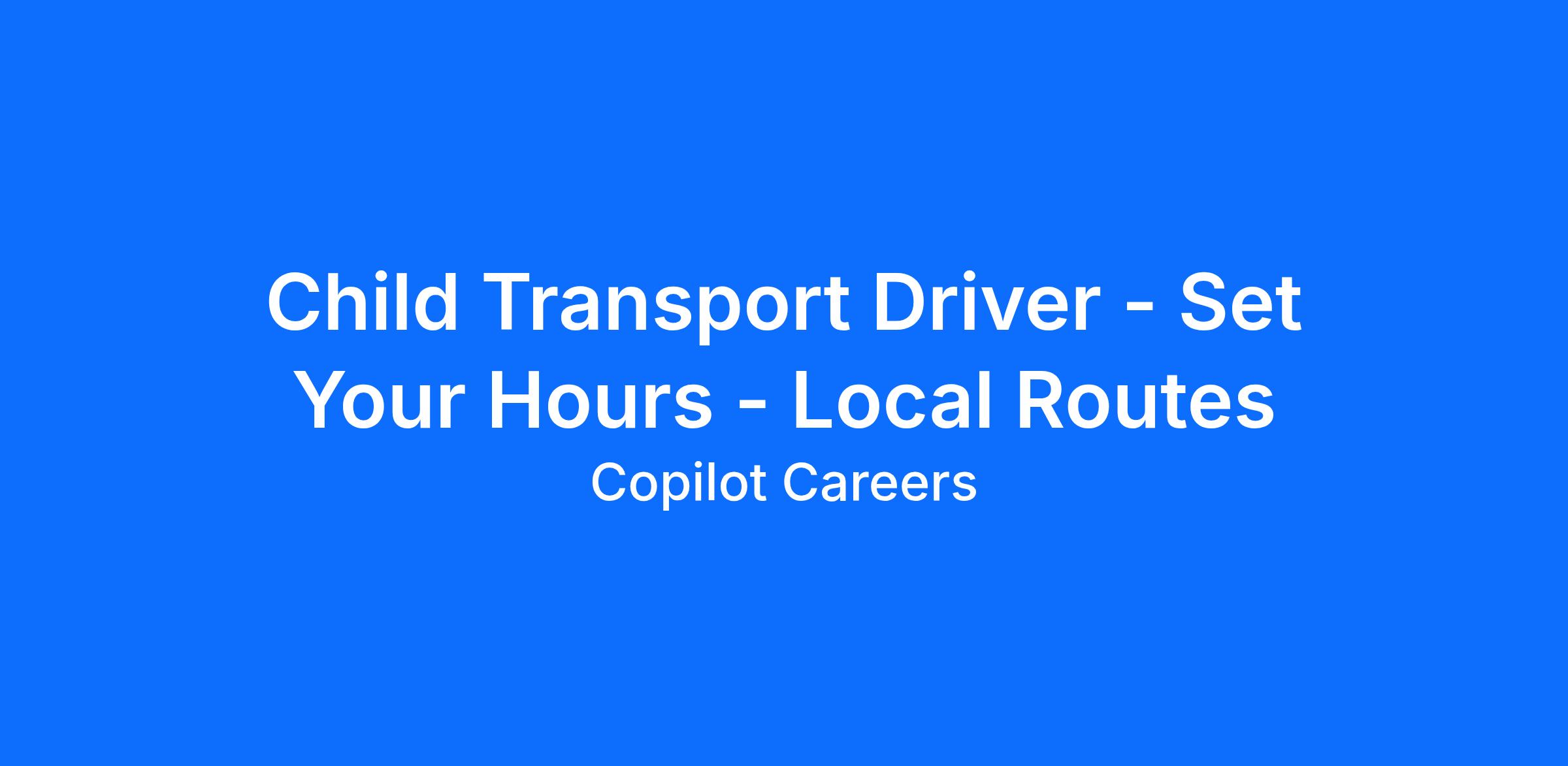 Child Transport Driver - Set Your Hours - Local Routes