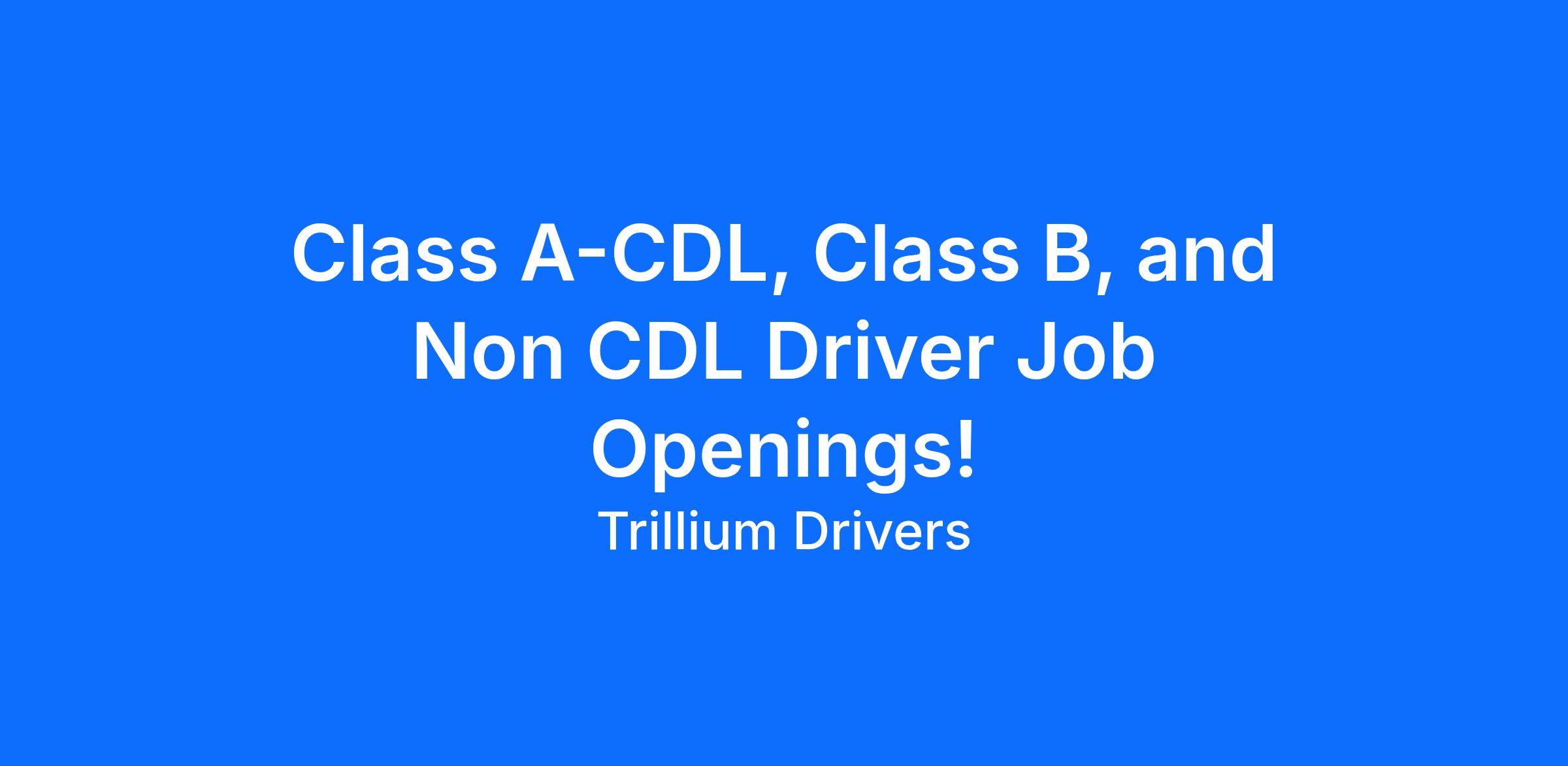 Class A-CDL, Class B, and Non CDL Driver Job Openings!