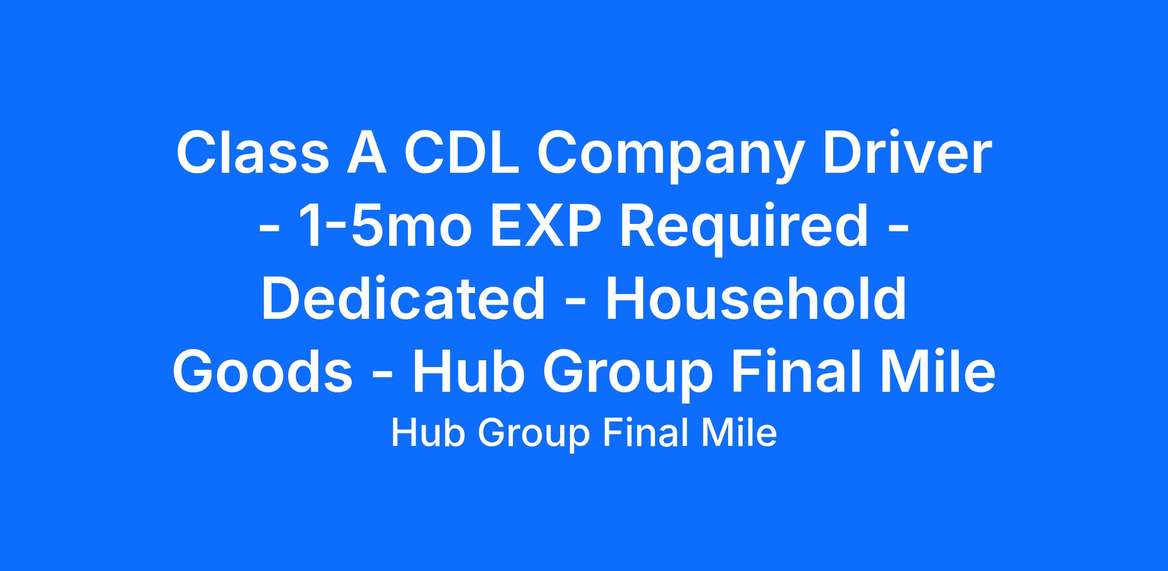 Hub Group Final Mile is Hiring Non-CDL ISP Appliance Delivery Team.