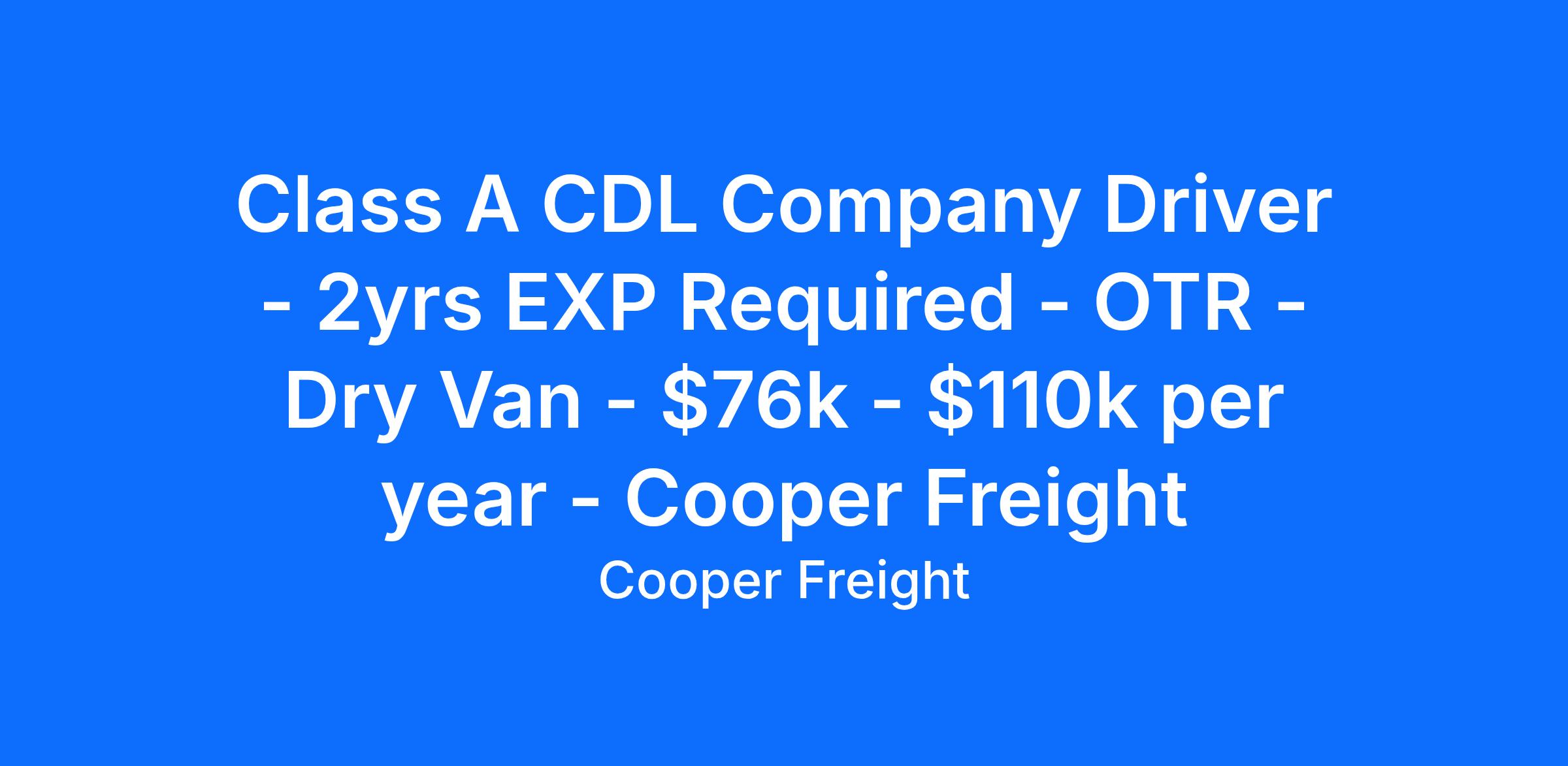 Cooper Freight is Hiring CDL A Drivers | Home Weekends, Great Benefits.
