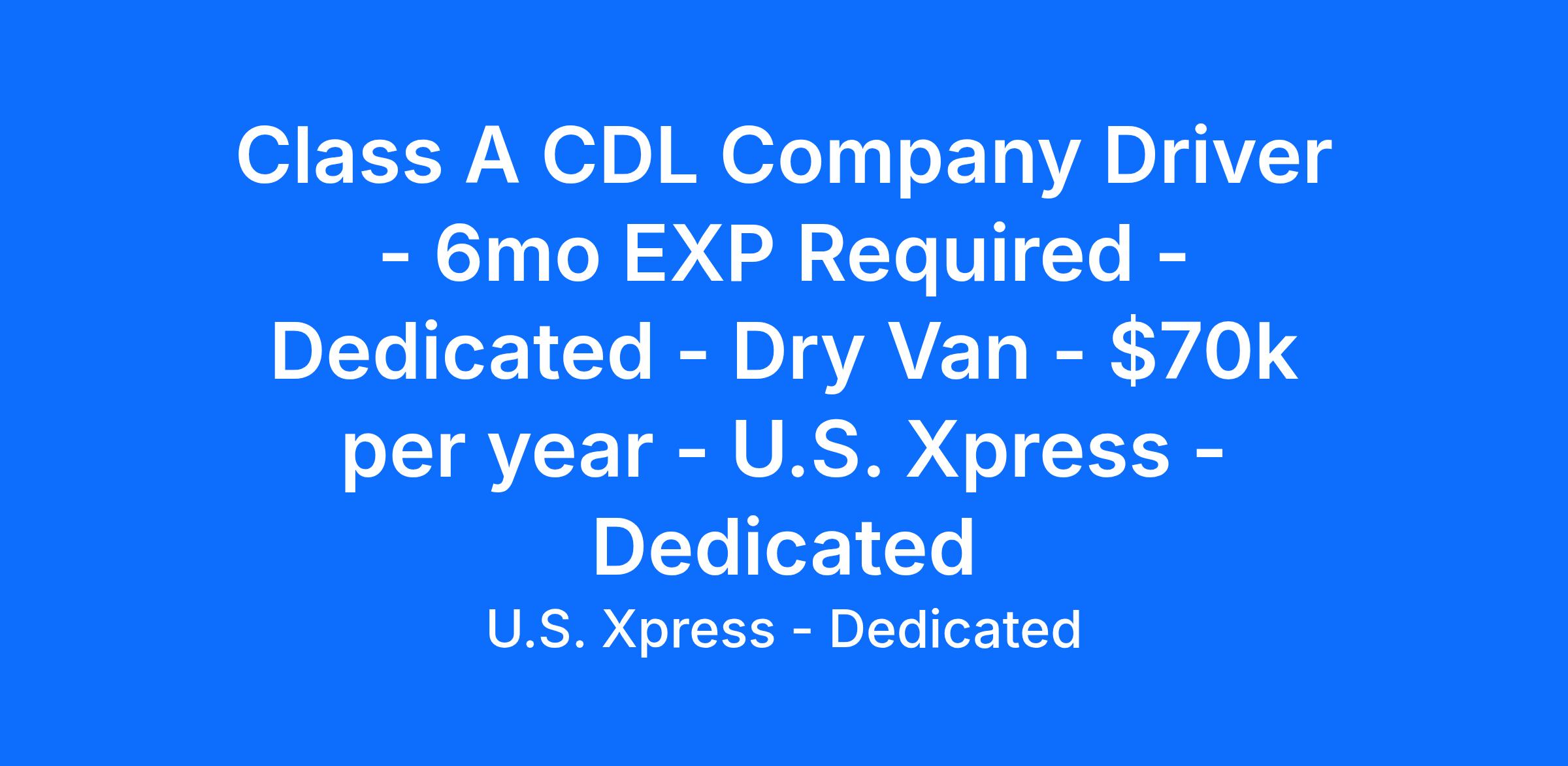 Class A CDL Company Driver - 6mo EXP Required - Dedicated - Dry Van - $70k per year - U.S. Xpress - Dedicated