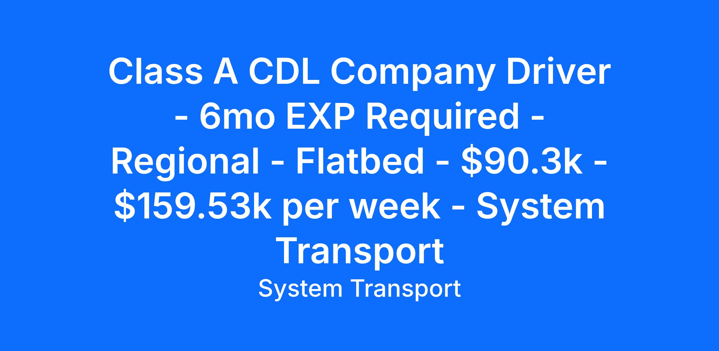 Class A CDL Company Driver - 6mo EXP Required - Regional - Flatbed - $90.3k - $159.53k per week - System Transport