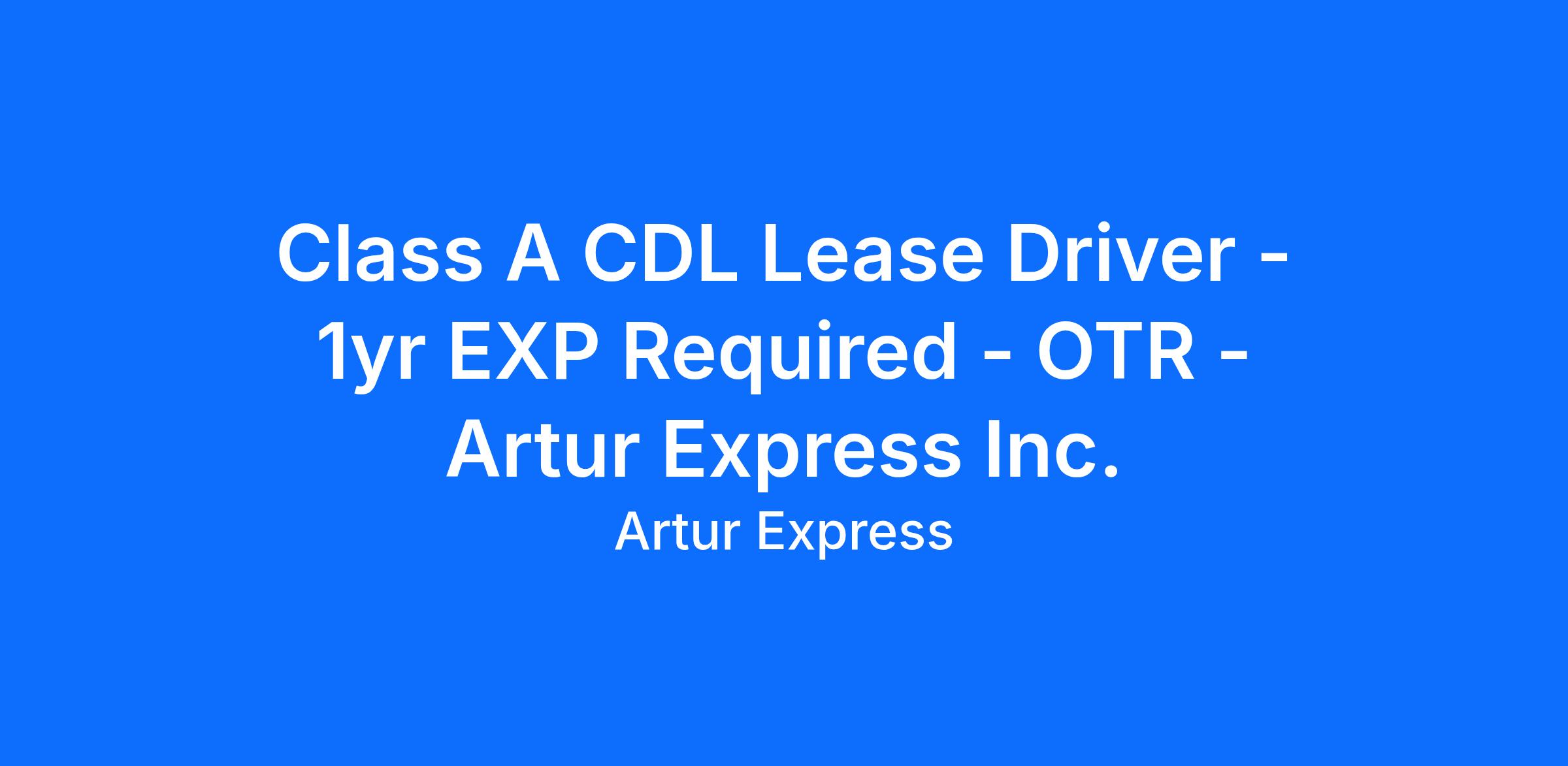 Class A CDL Lease Driver - 1yr EXP Required - OTR - Artur Express Inc.