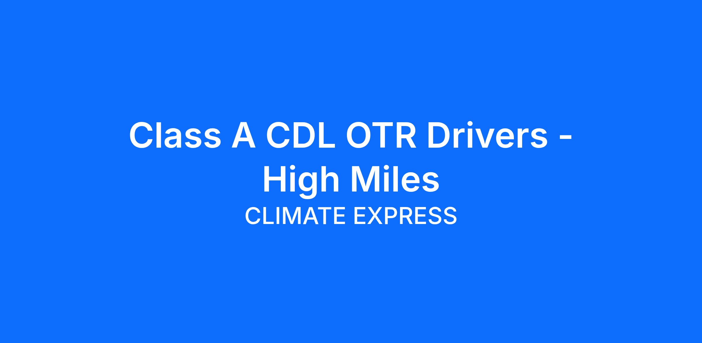 Class A CDL OTR Drivers - High Miles