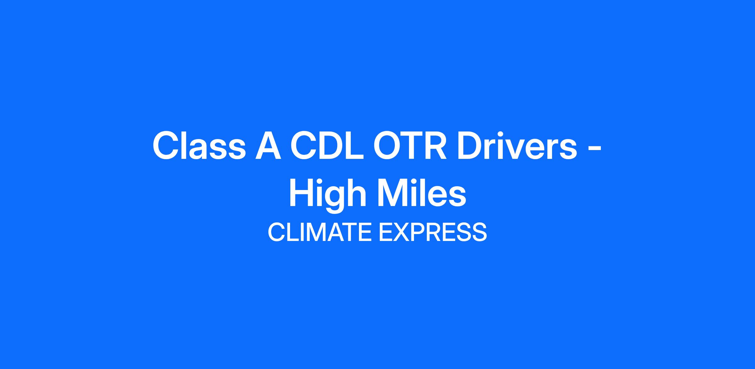 Class A CDL OTR Drivers-High Miles